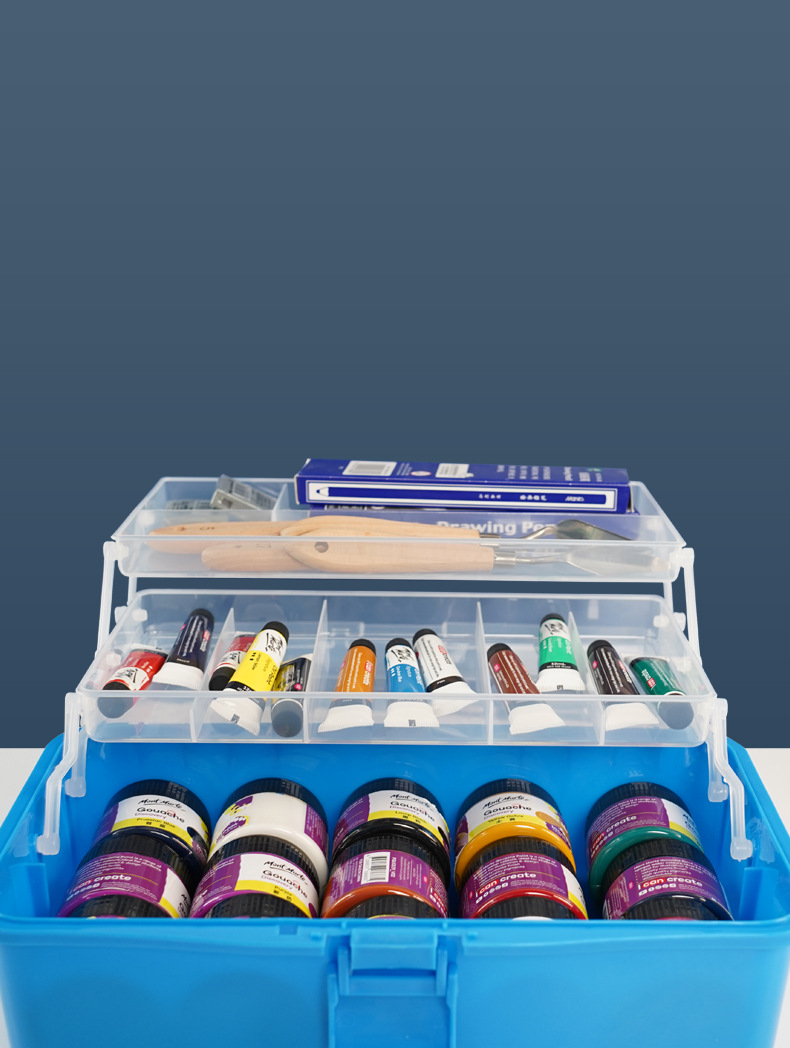 Yueyue 두꺼운 휴대용 미술 도구 상자 대형 3 층 다기능 접이식 보관 상자 구 아슈 유화 상자