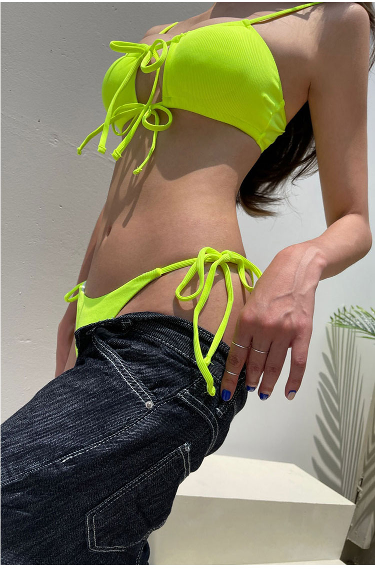형광 조끼 여성용 슬림핏 섹시 스플릿 비키니 스트랩 한국 등이없는 스타일 여성용 수영복스토어 가기