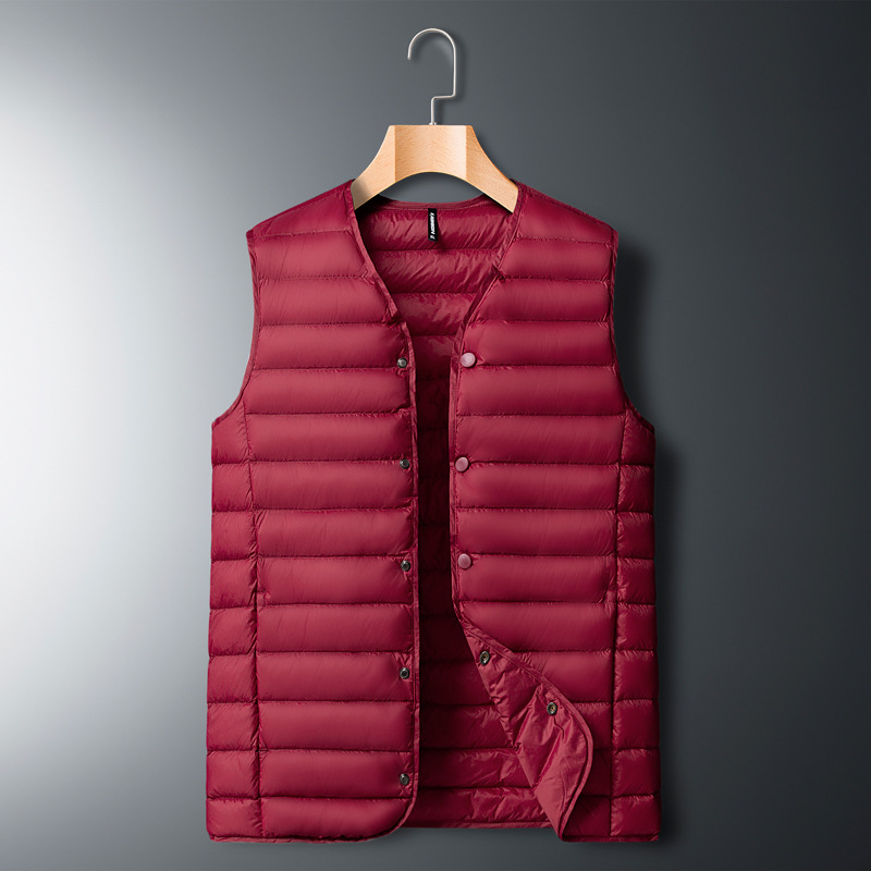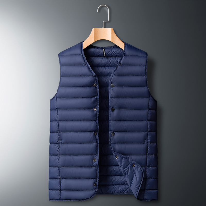 유럽과 미국 라이트 다운 조끼 남자의 가을과 겨울 착용 중년 지방 내부 착용 따뜻한 조끼 내부 탱크 스포츠 V-넥 조끼