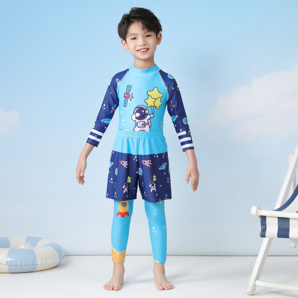 어린이 수영복 소년의 원피스 수영복 해변 태양 보호 서핑 세트 보수적 인 공룡 긴 소매 바지 소년의 수영복스토어 가기