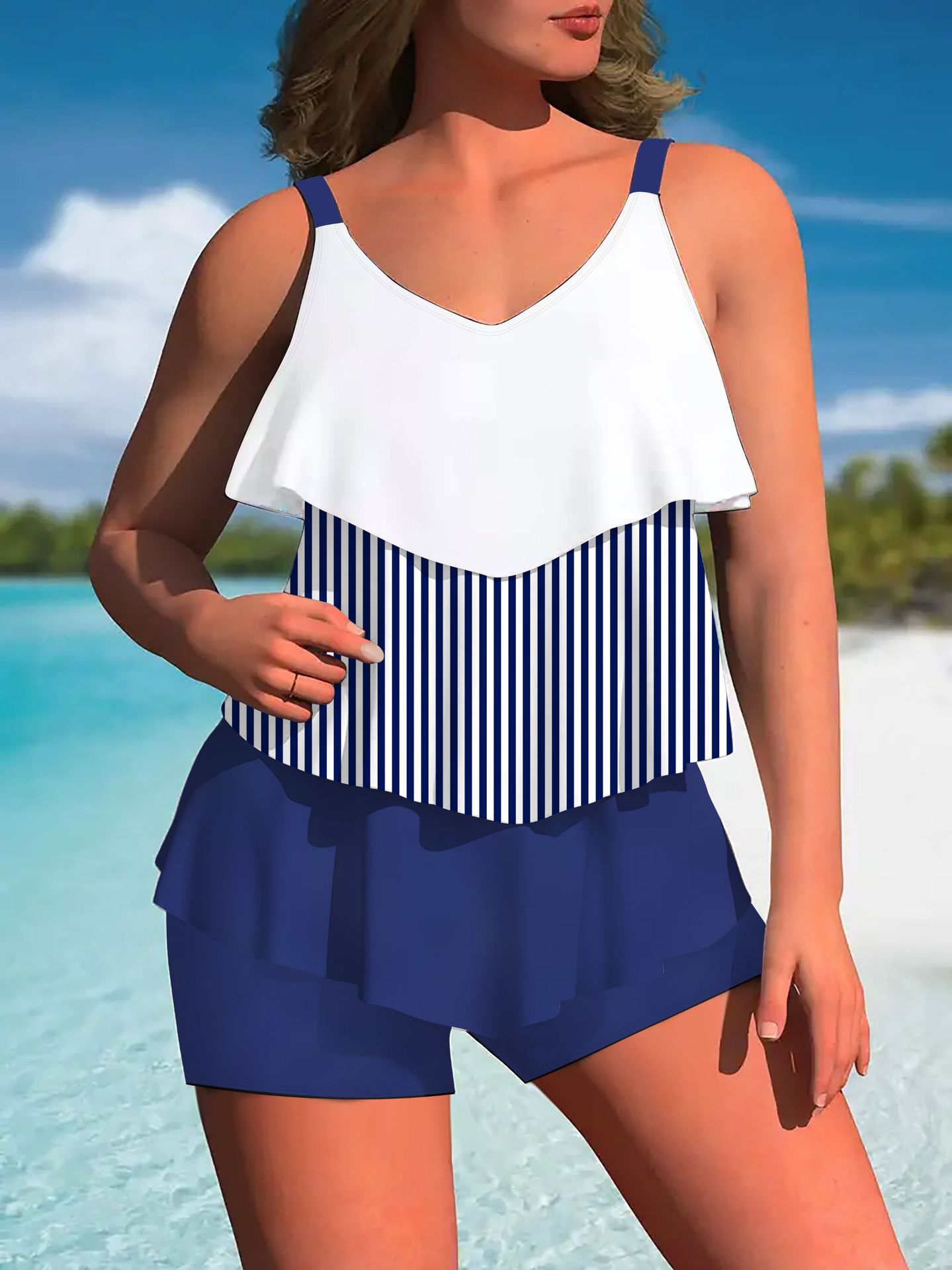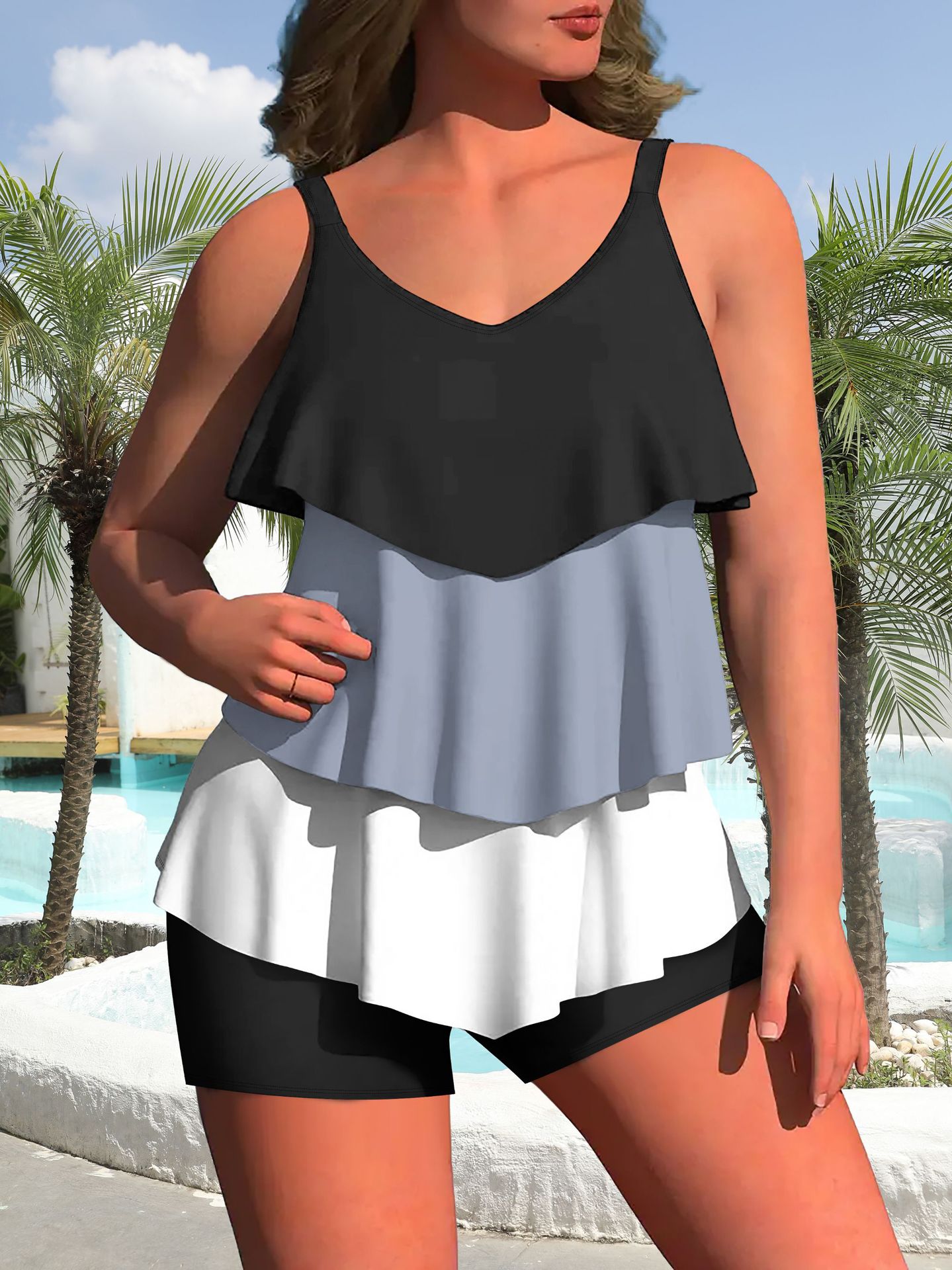 2025 유럽과 미국의 새로운 대외 무역 여성 스플릿 수영복 스커트 대형 프린트 AliExpress 비키니 여성 수영복 Asia