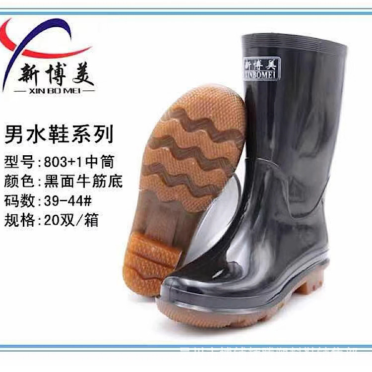 새로운 보메 남성용 힘줄 바닥 중간 튜브 워터 슈즈 미끄럼 방지 노동 보호 내마모성 플라스틱 남성용 장화 도매 공장 직접 공급스토어 가기