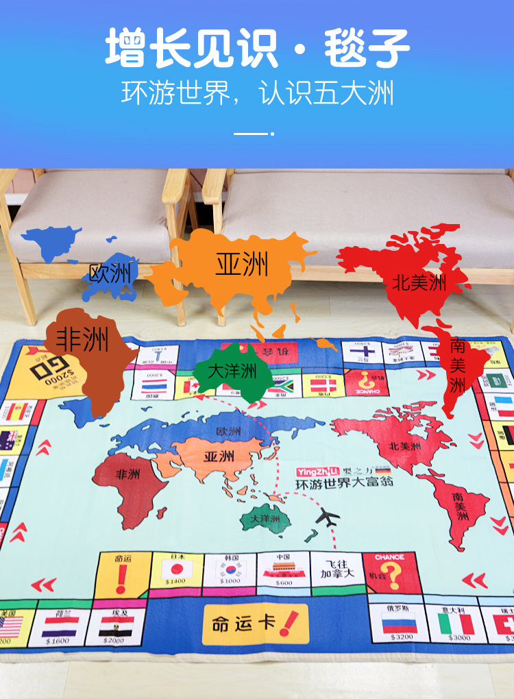 모노폴리 투인원 카펫 양면 대형 플라잉 체스 플로어 매트 어린이 크롤링 부모-자식 게임 체스
