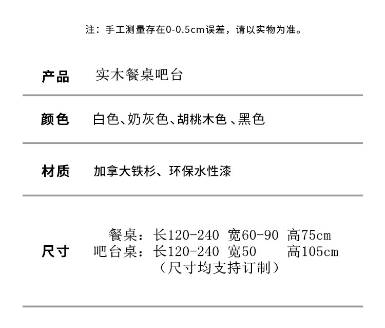 • 바 테이블: 180 × 50 × 105 5cm 두께