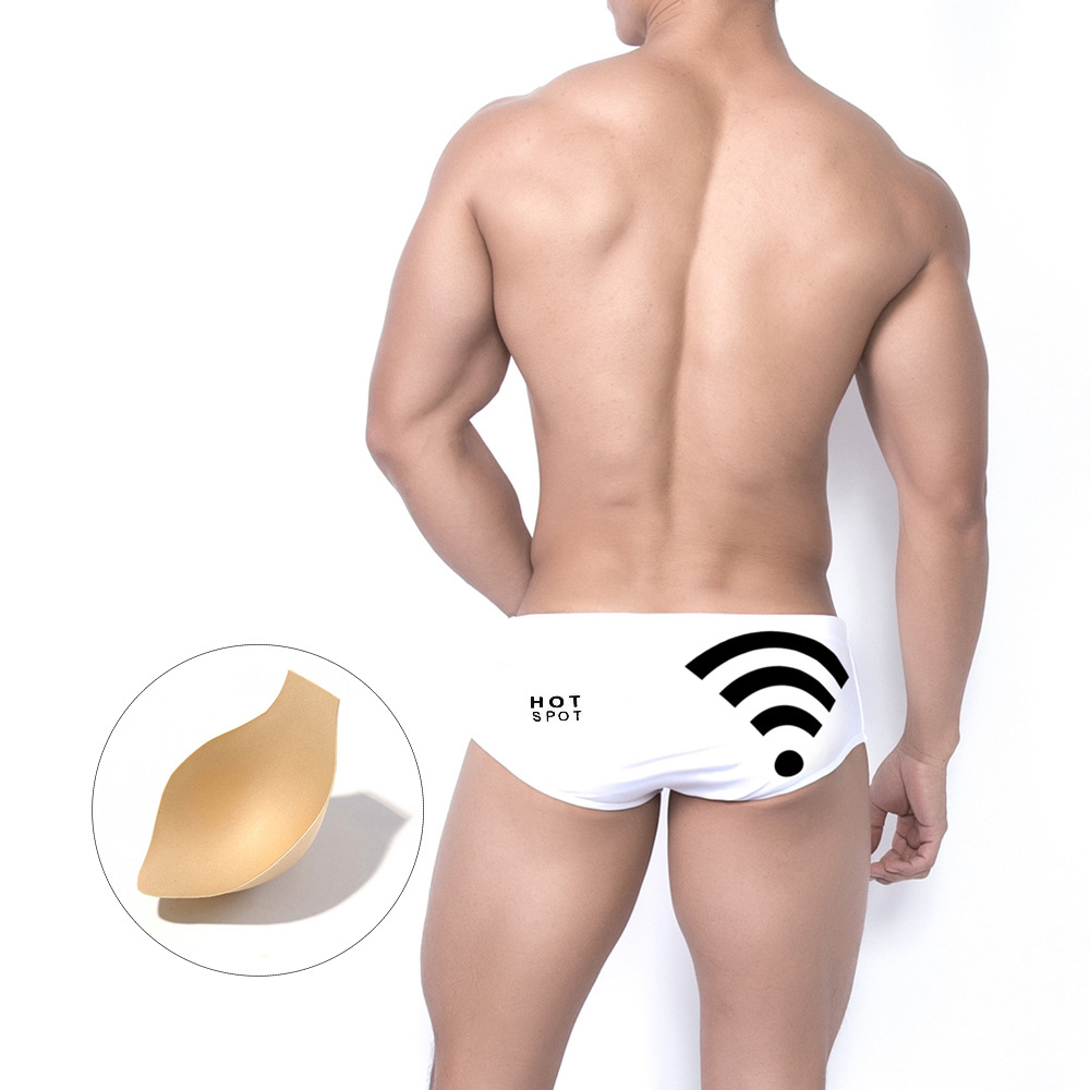 UXH 남자의 흰색 인쇄 작은 복서 수영 트렁크 컵 섹시 비치 복서 크로스 보더 재고 복서 수영 트렁크