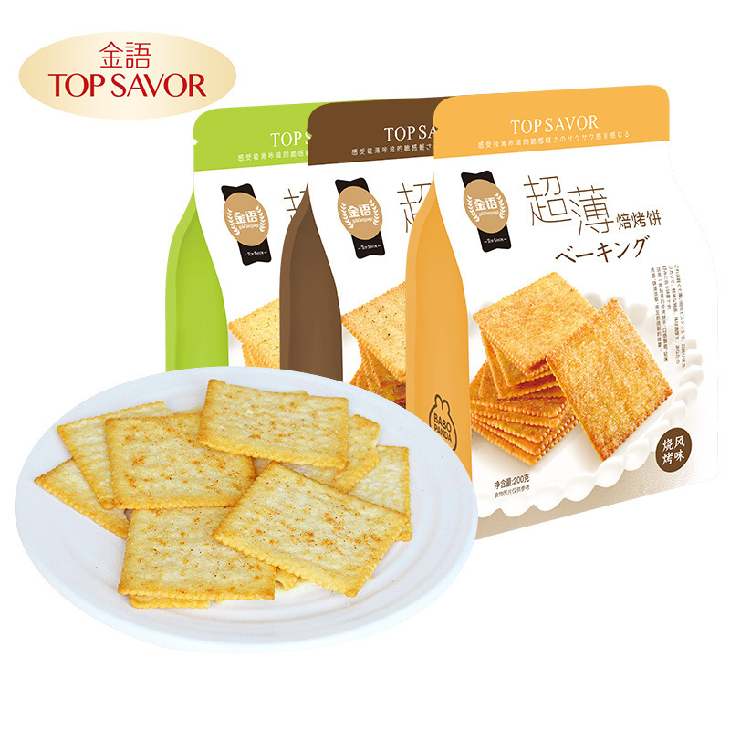 골드 랭귀지 초박형 구운 케이크 바베큐 맛 200g 캐주얼 네트 레드 스낵 아침 식사 크래커 인스턴트 도매스토어 가기