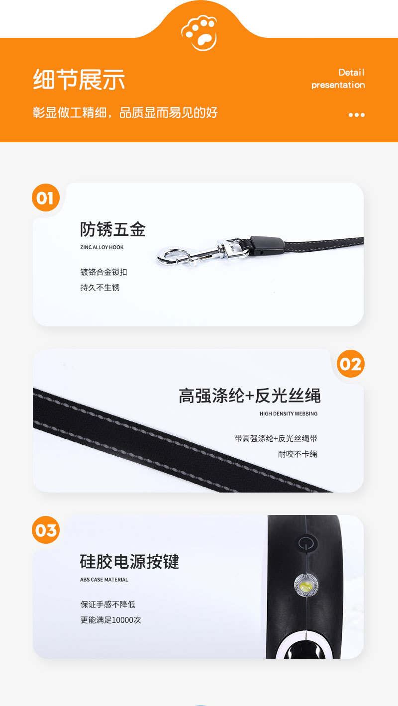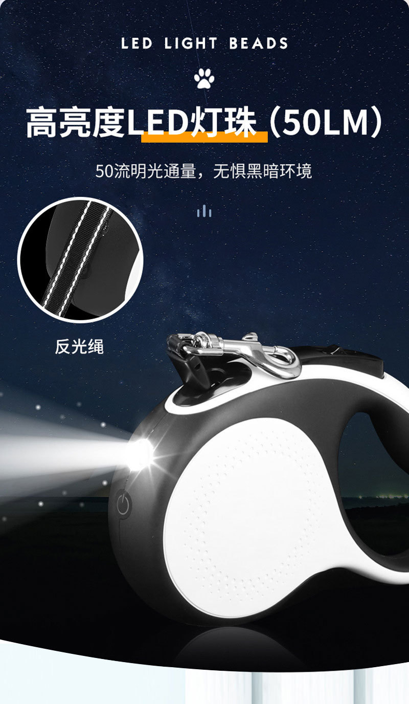 LED 애완동물 자동 신축 목줄 조명 충전식 손전등 애완동물 목줄 자동 신축 개줄스토어 가기