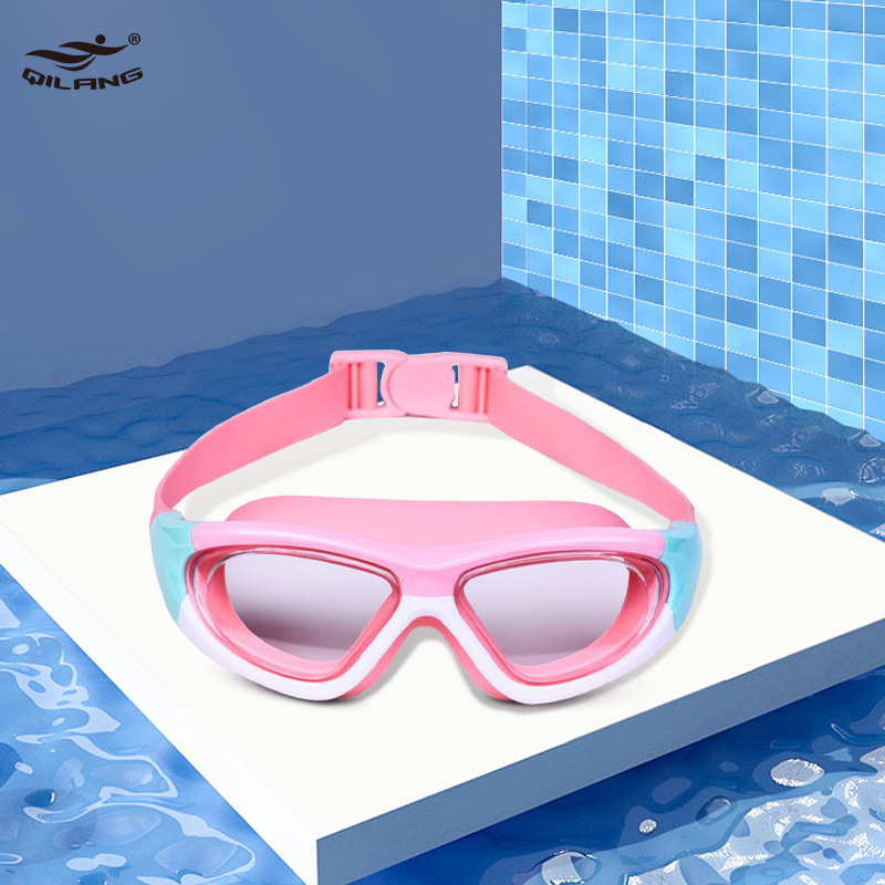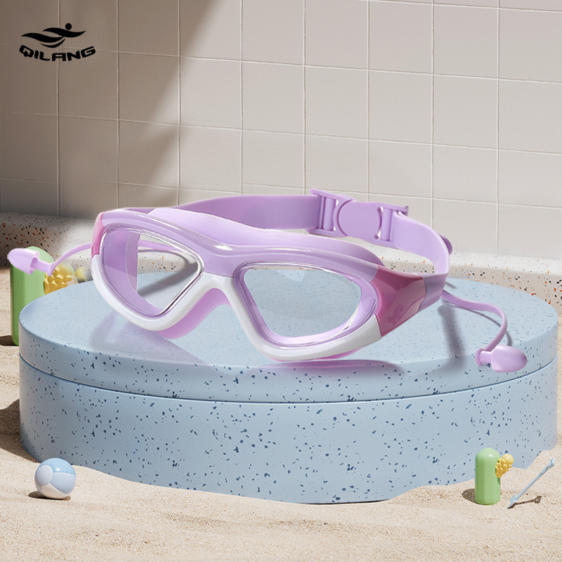 어린이 수영 고글 방수 김서림 방지 대형 프레임 다이빙 고글 소년 소녀 전문 원피스 귀마개 실리콘 HD 수영 안경