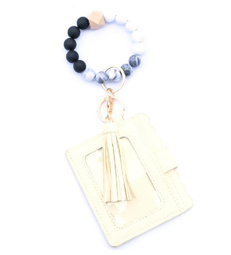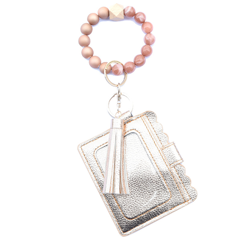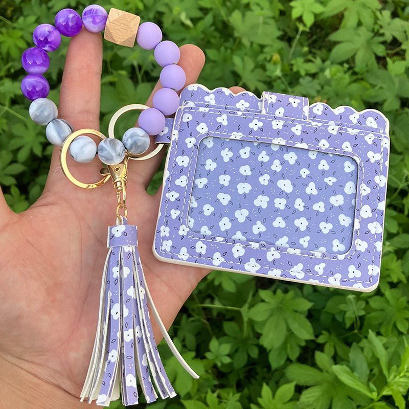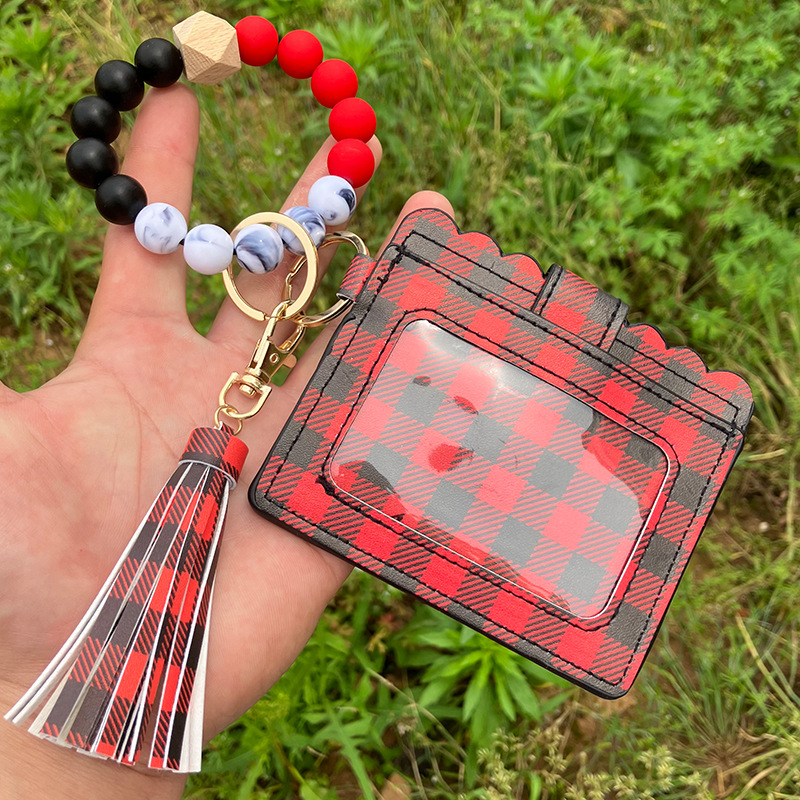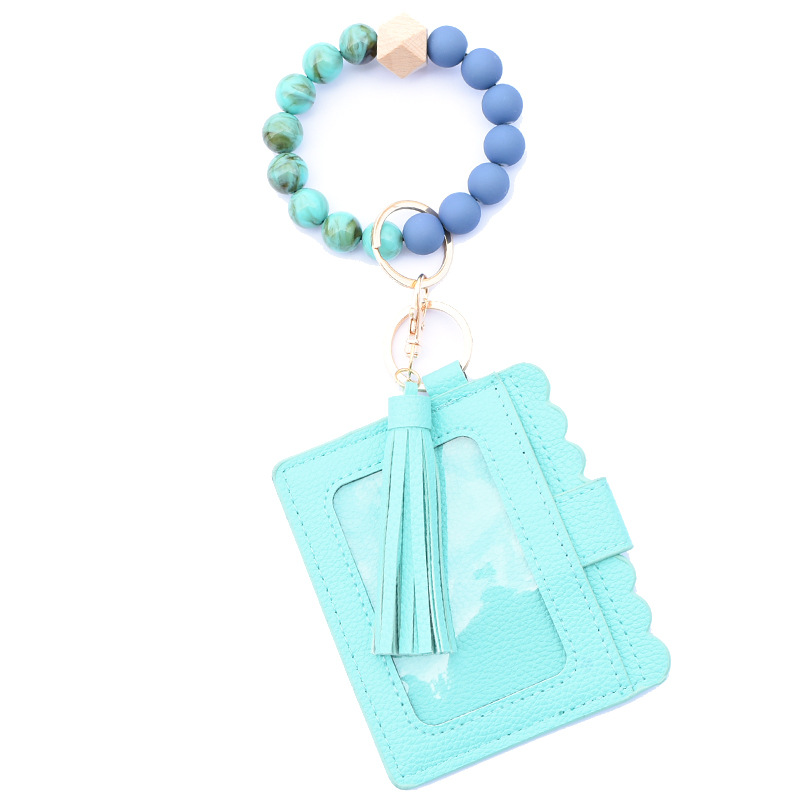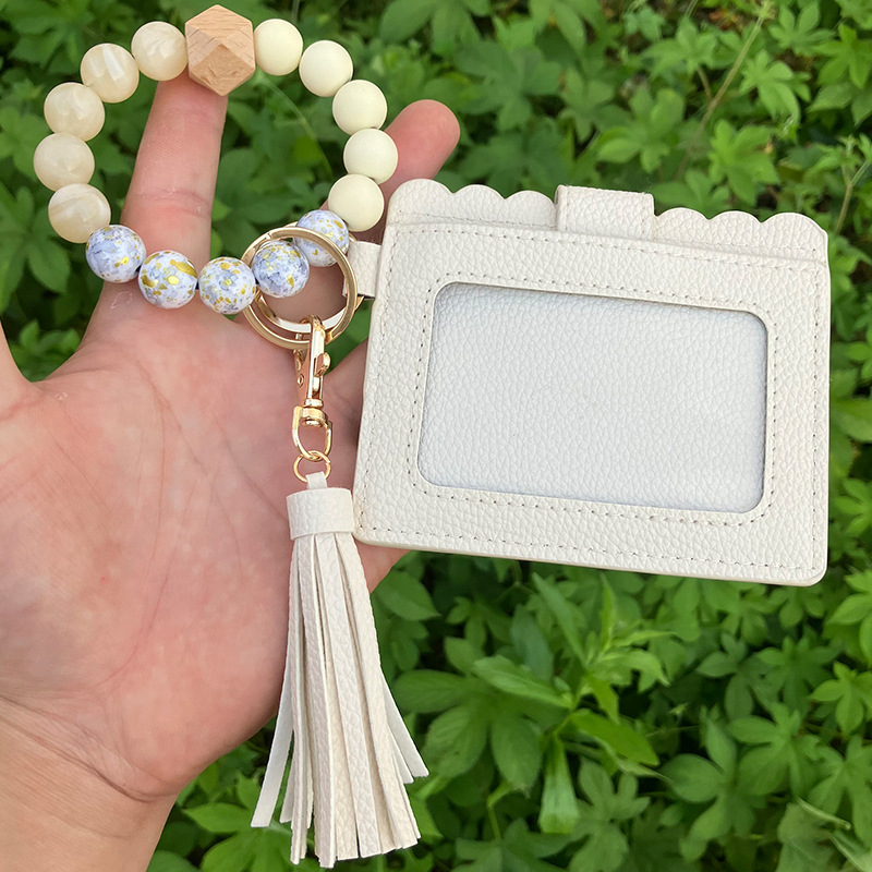 跨境PU豹纹蛇纹卡包彩色珠子手环女士零钱包公交卡套皮革流苏吊坠