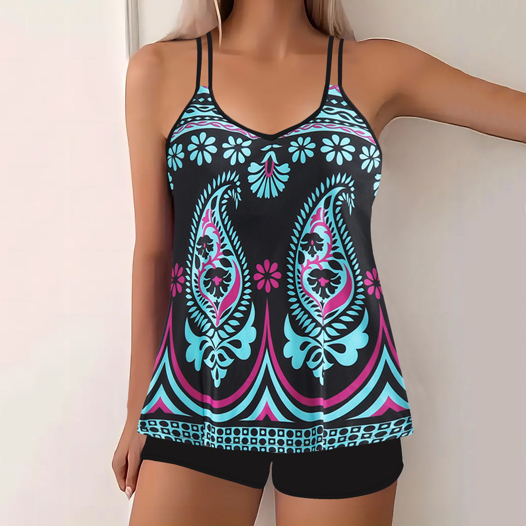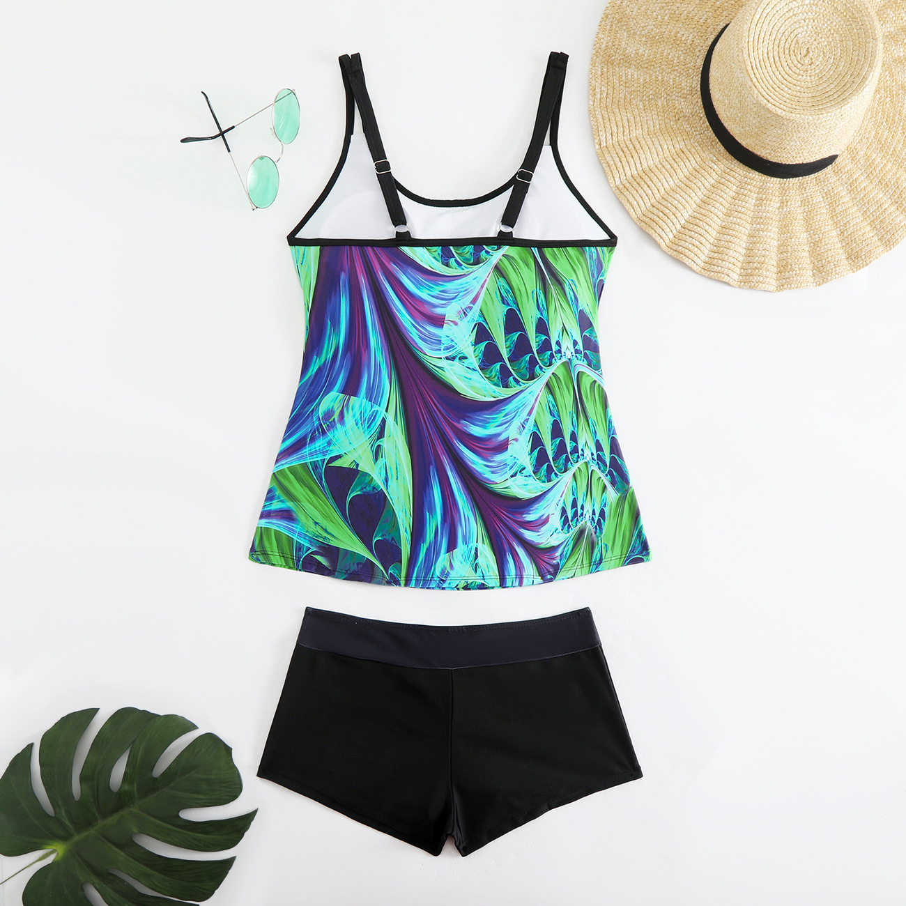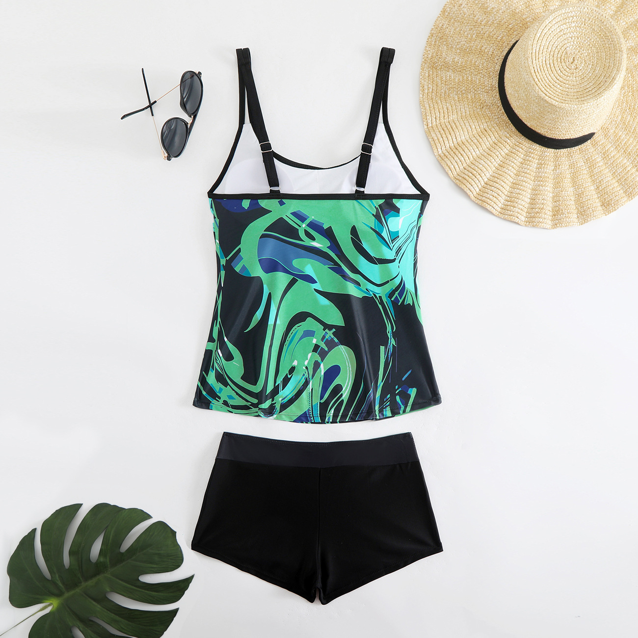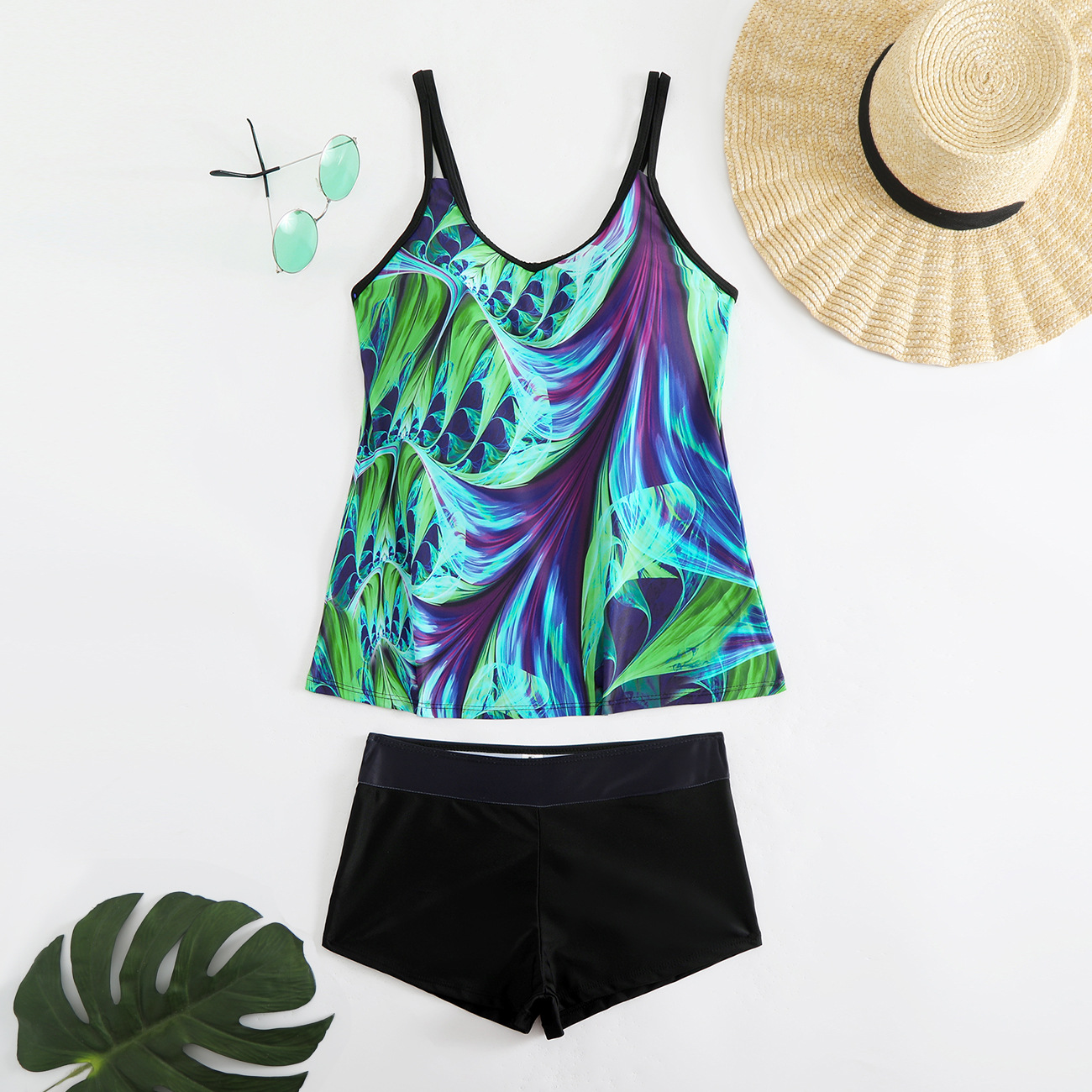 2025 새로운 유럽과 미국 수영복 여성 비키니 잎 프린트 사각 팬티 비키니 아마존 수영복스토어 가기