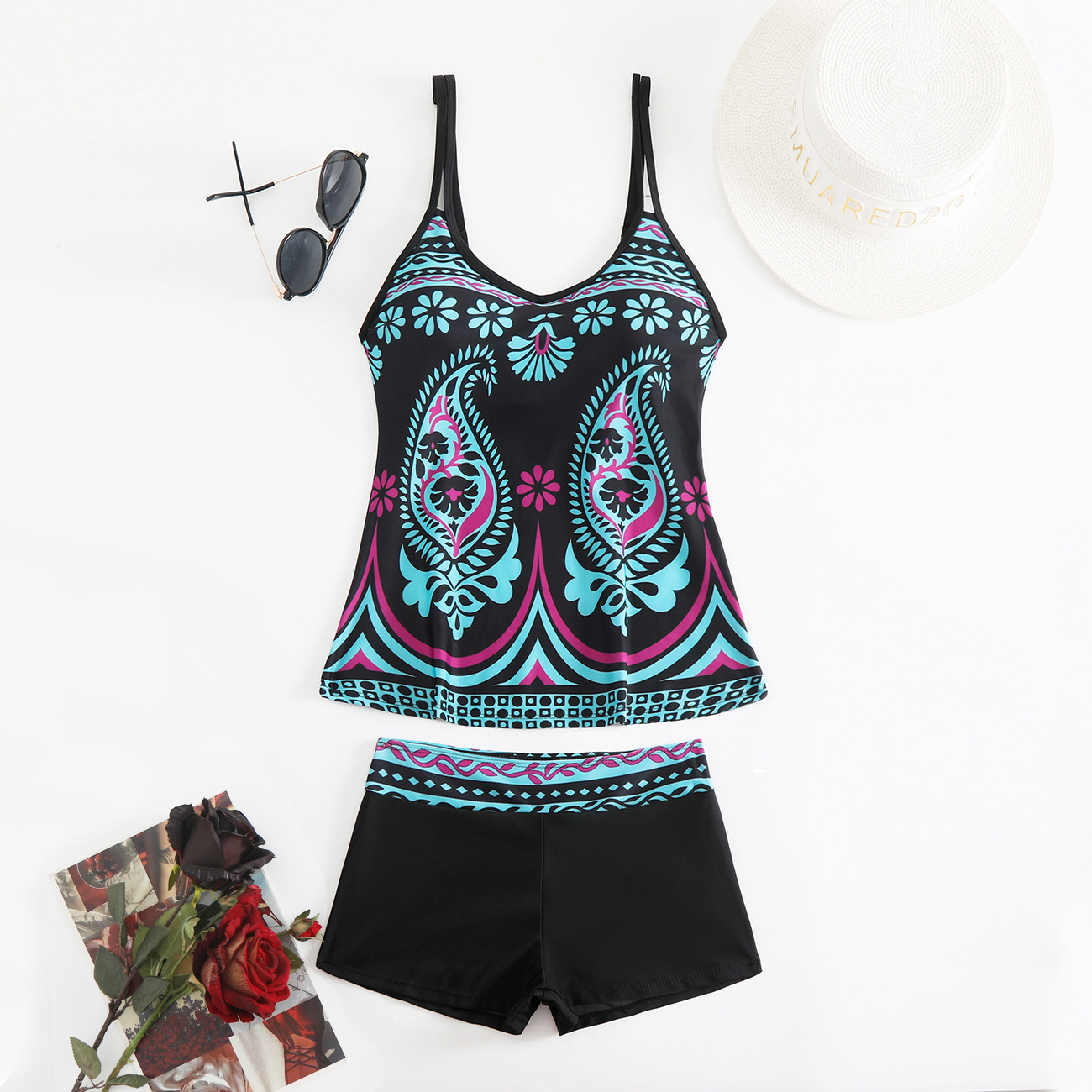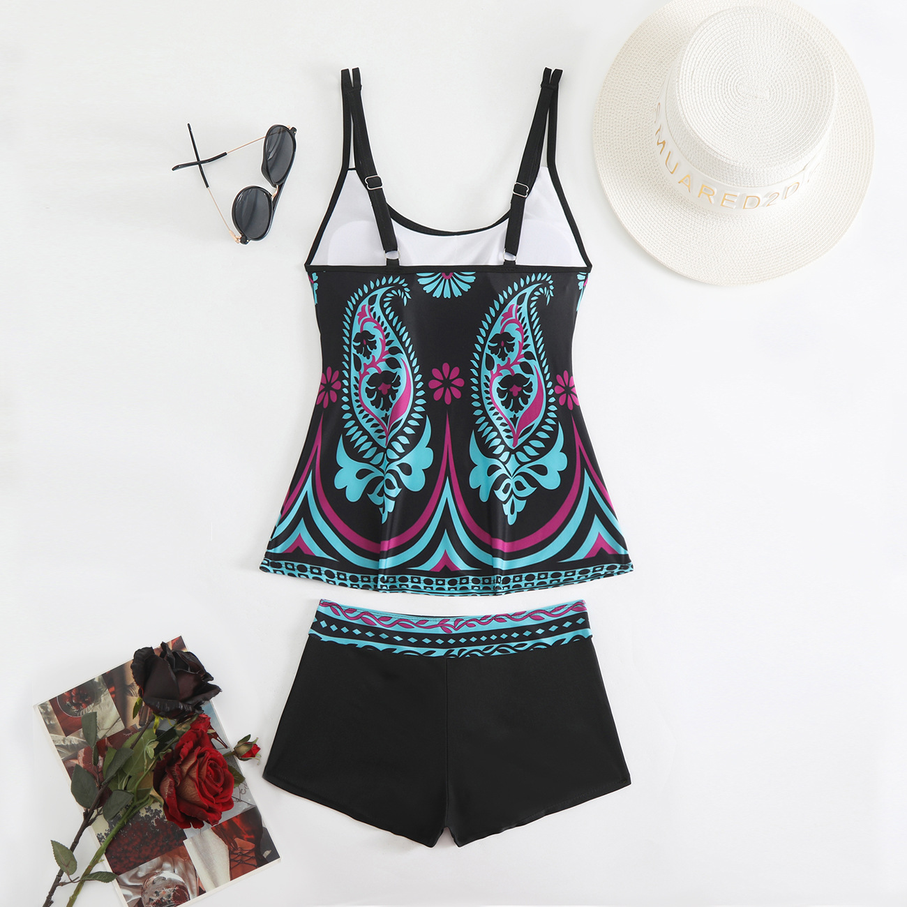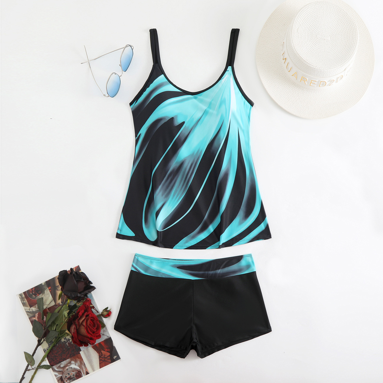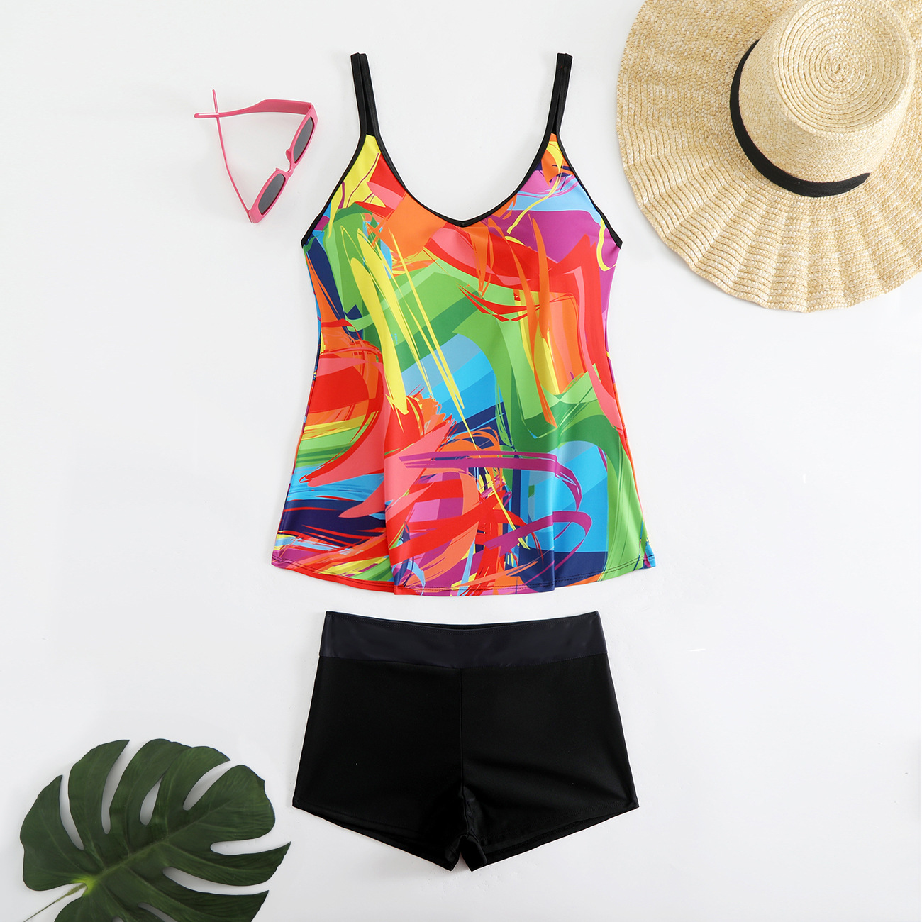 2025 새로운 유럽과 미국 수영복 여성 비키니 잎 프린트 사각 팬티 비키니 아마존 수영복스토어 가기