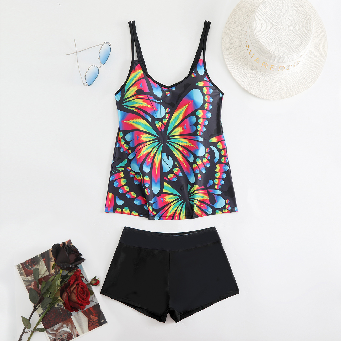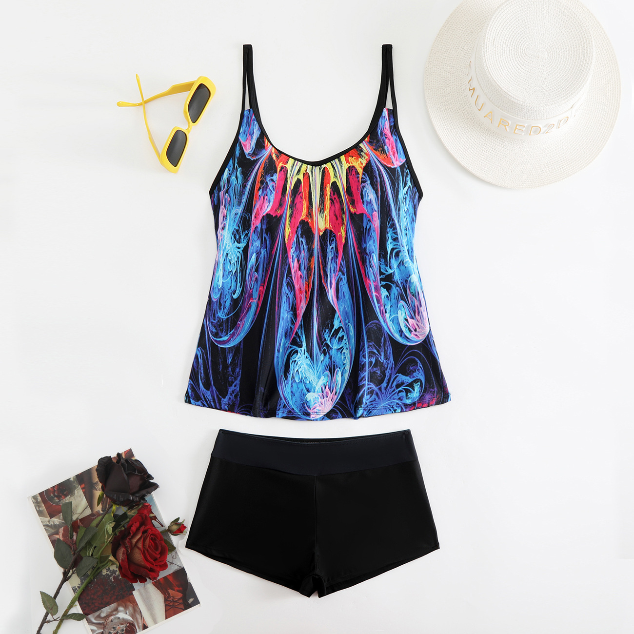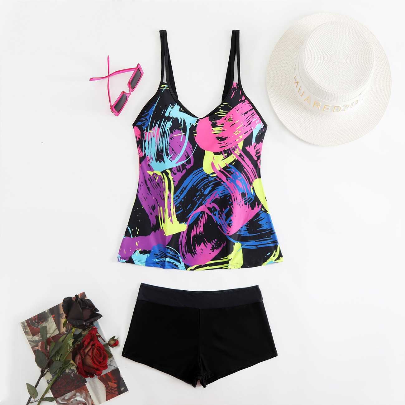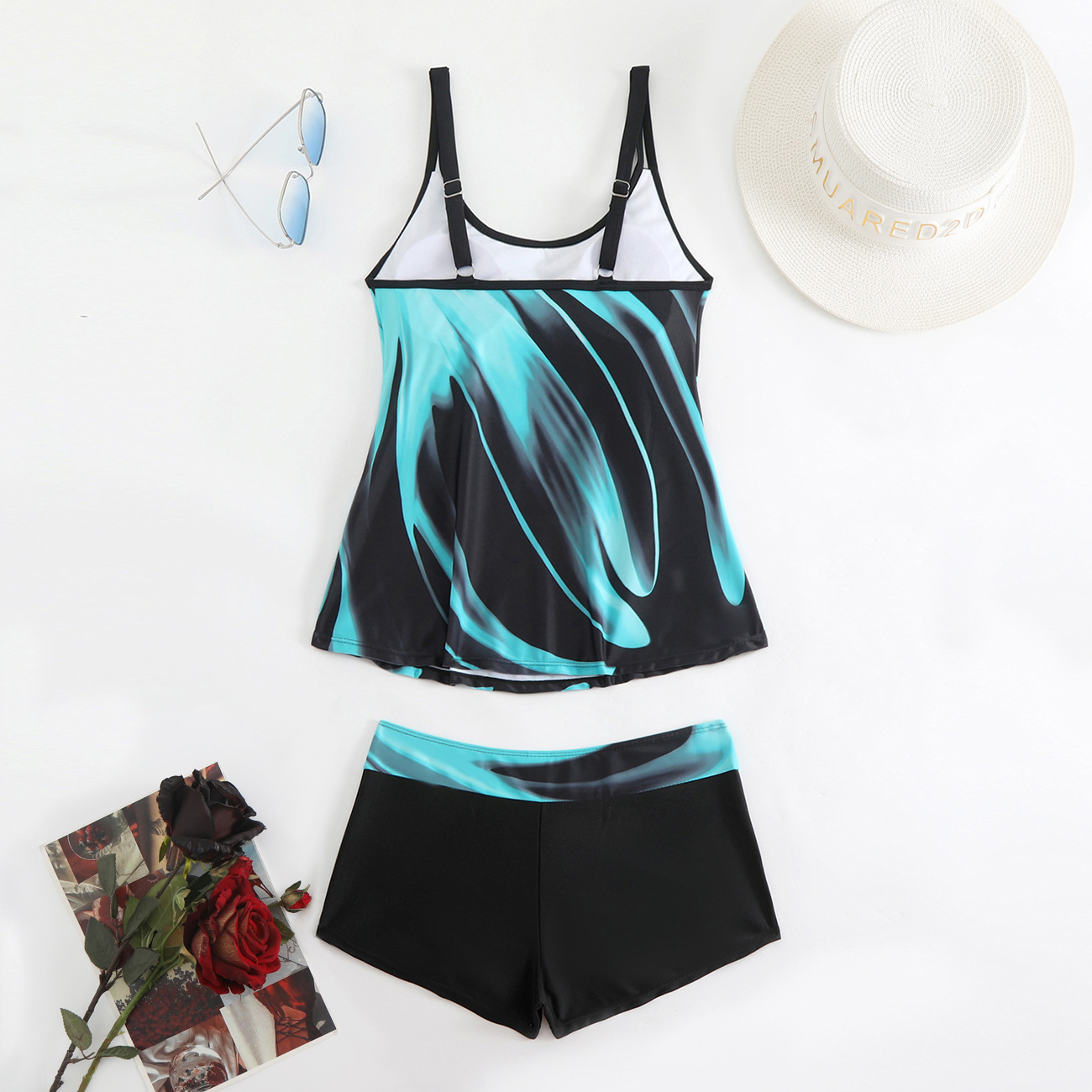 2025 새로운 유럽과 미국 수영복 여성 비키니 잎 프린트 사각 팬티 비키니 아마존 수영복스토어 가기