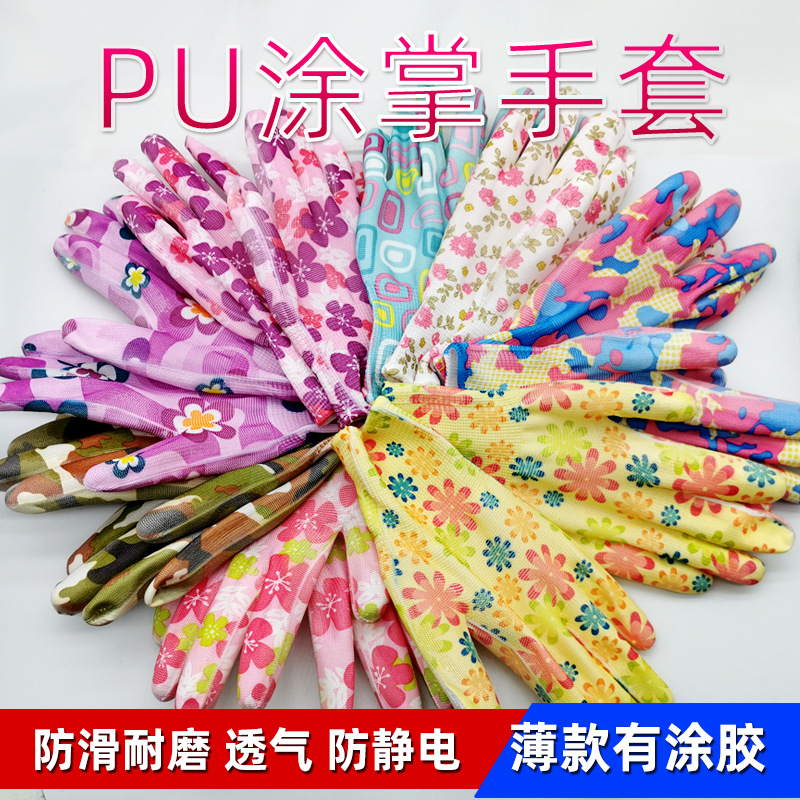 꽃무늬 PU 코팅 손바닥 무진정 정전기 방지 장갑, 노동 보호, 내마모성, 고무 함침 폴리우레탄, 수확 및 조립용, 미끄럼 방지스토어 가기