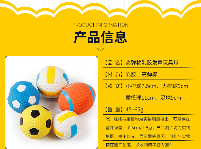 애완동물 라텍스 장난감 솜 충전 라텍스 배구 축구 럭비 소리나는 강아지 장난감 애완동물 장난감 도매스토어 가기
