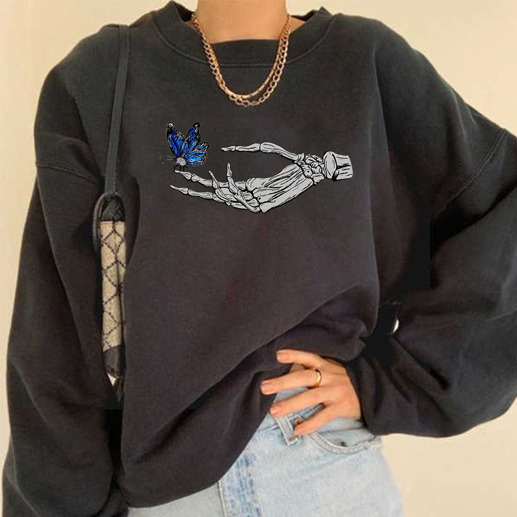 女Be Bright Be Happy 蝴蝶字母印花欧美宽松大码休闲短袖女T恤现货