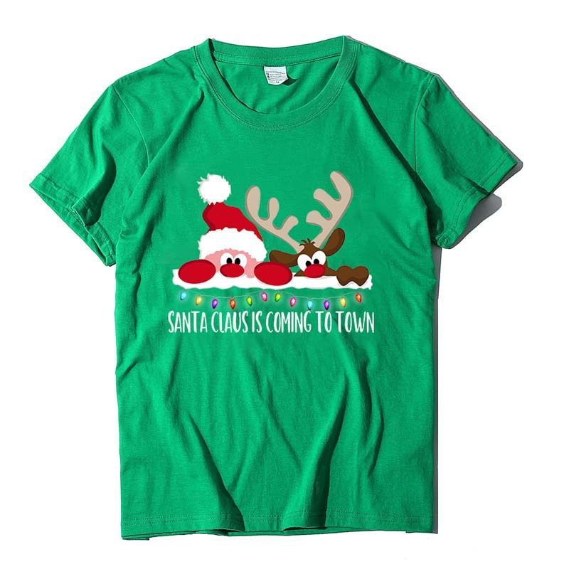 크리스마스 반팔 티셔츠 여성 유럽 사이즈 산타클로스 프린트 크리스마스 티셔츠 여성용 상의 작업복 트렌디 패션 만능 아이템스토어 가기