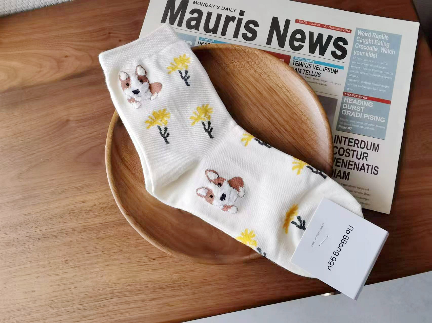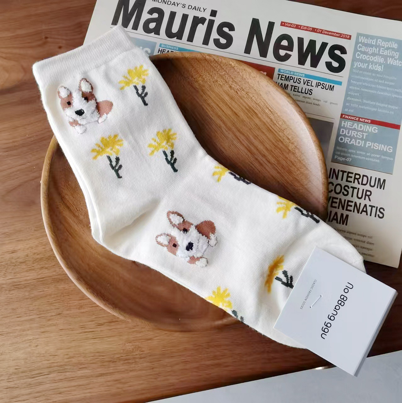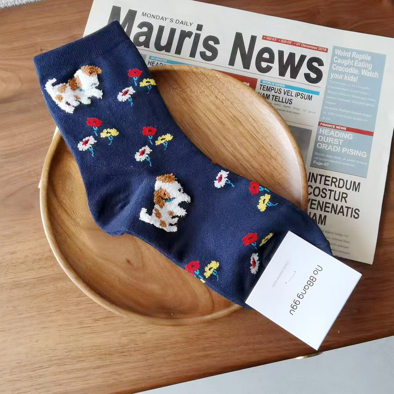 동대문 가을과 겨울 여성 면 양말 귀여운 개 꽃 하이 탑 성인 양말 NOBBANGGGU 한국 양말