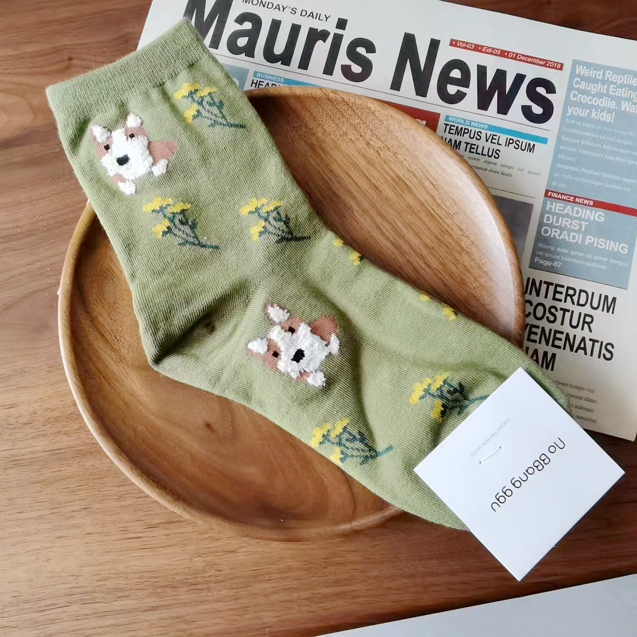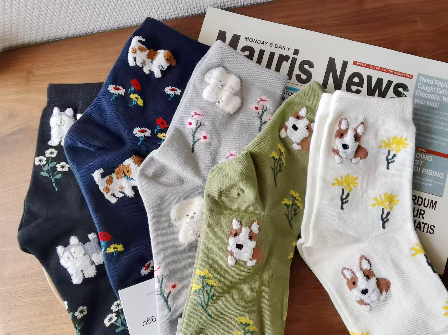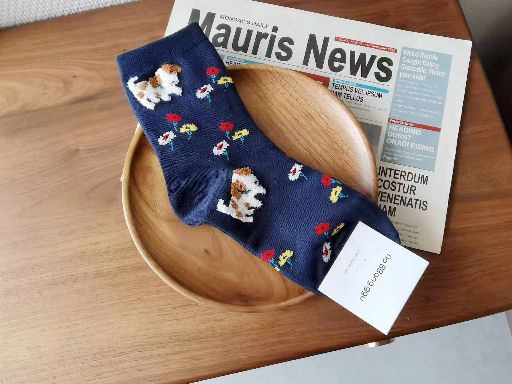 동대문 가을과 겨울 여성 면 양말 귀여운 개 꽃 하이 탑 성인 양말 NOBBANGGGU 한국 양말
