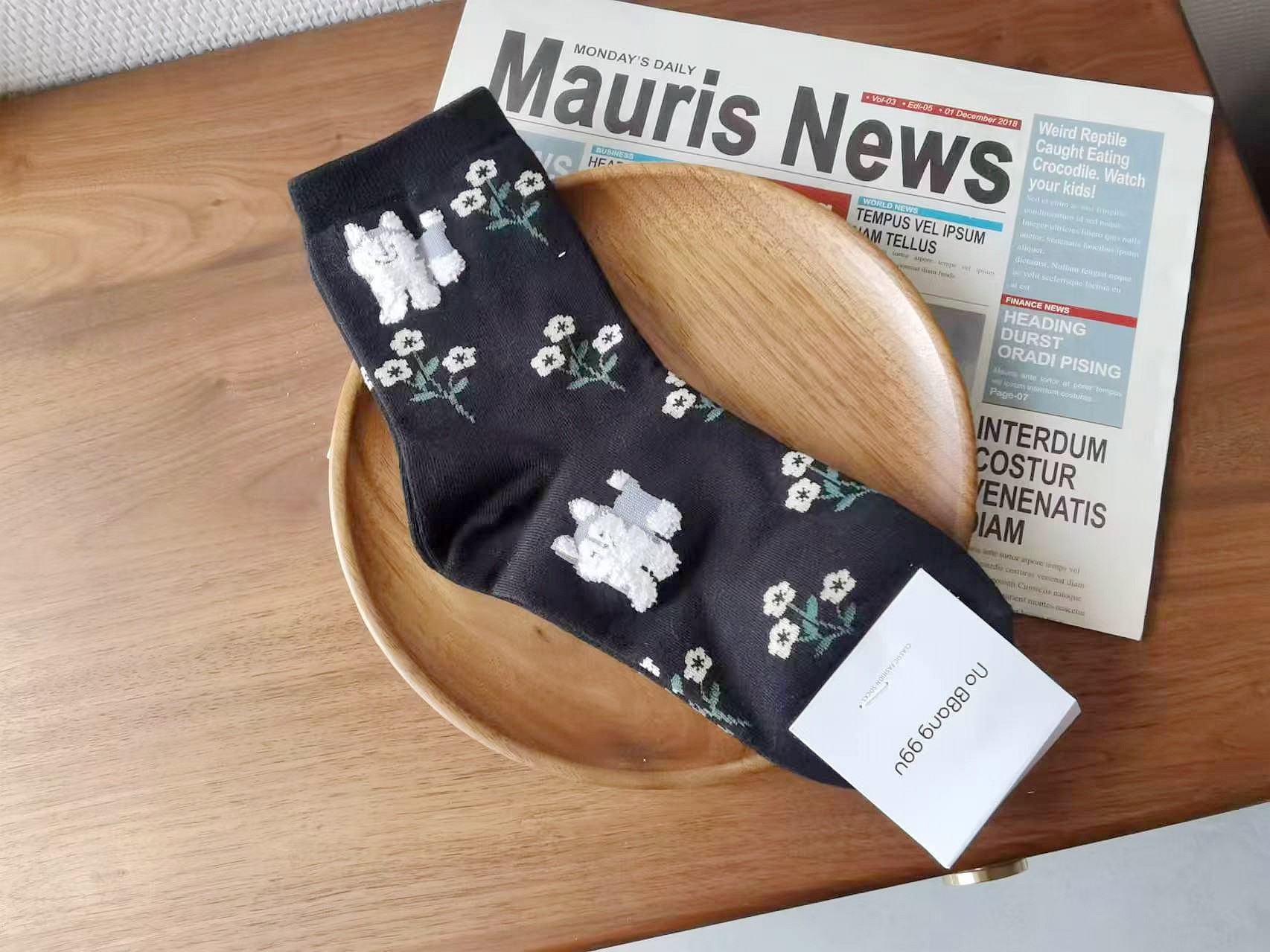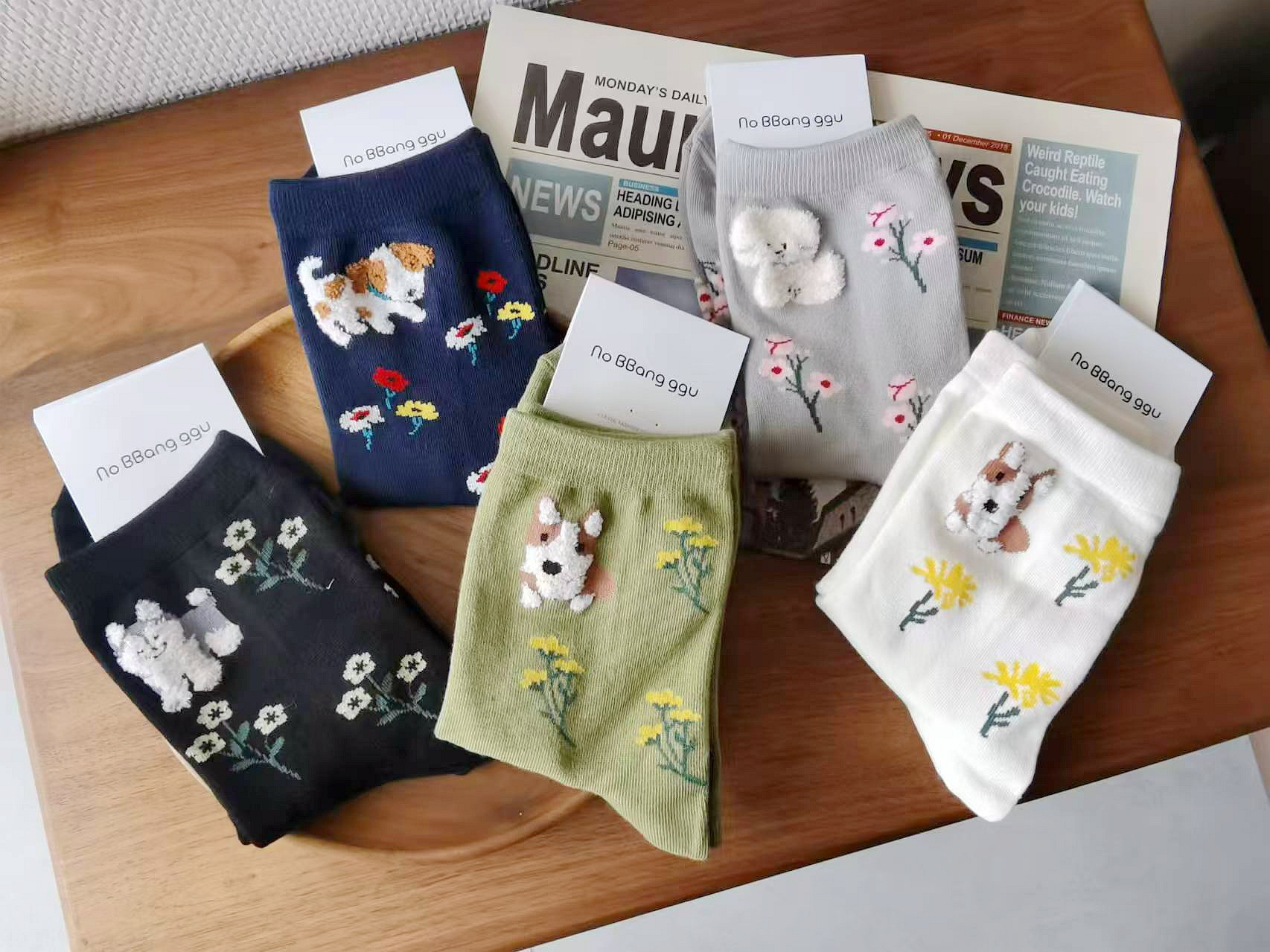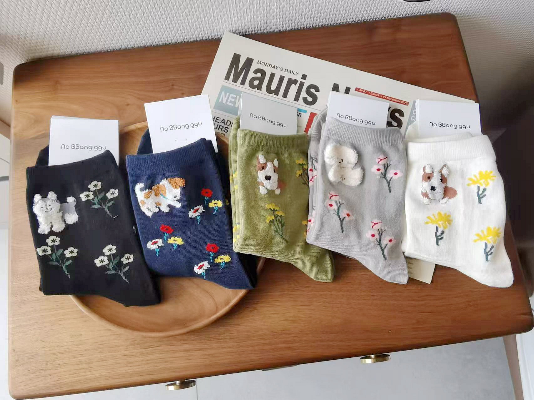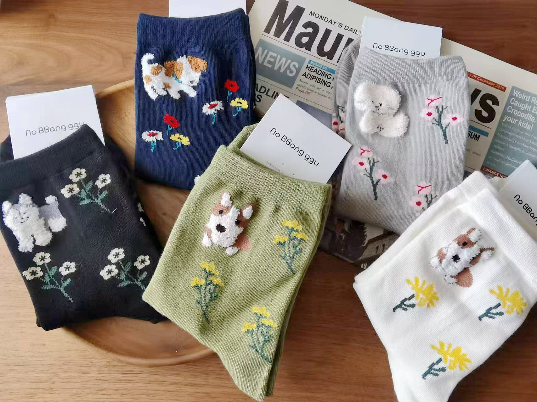 동대문 가을과 겨울 여성 면 양말 귀여운 개 꽃 하이 탑 성인 양말 NOBBANGGGU 한국 양말스토어 가기