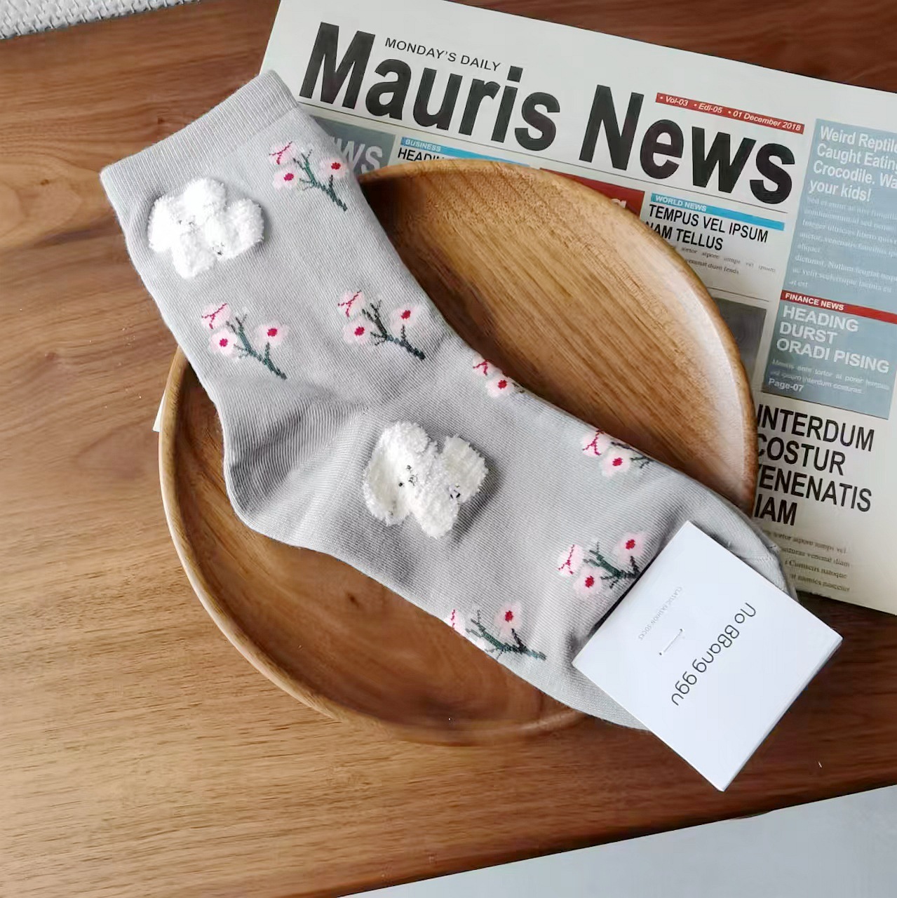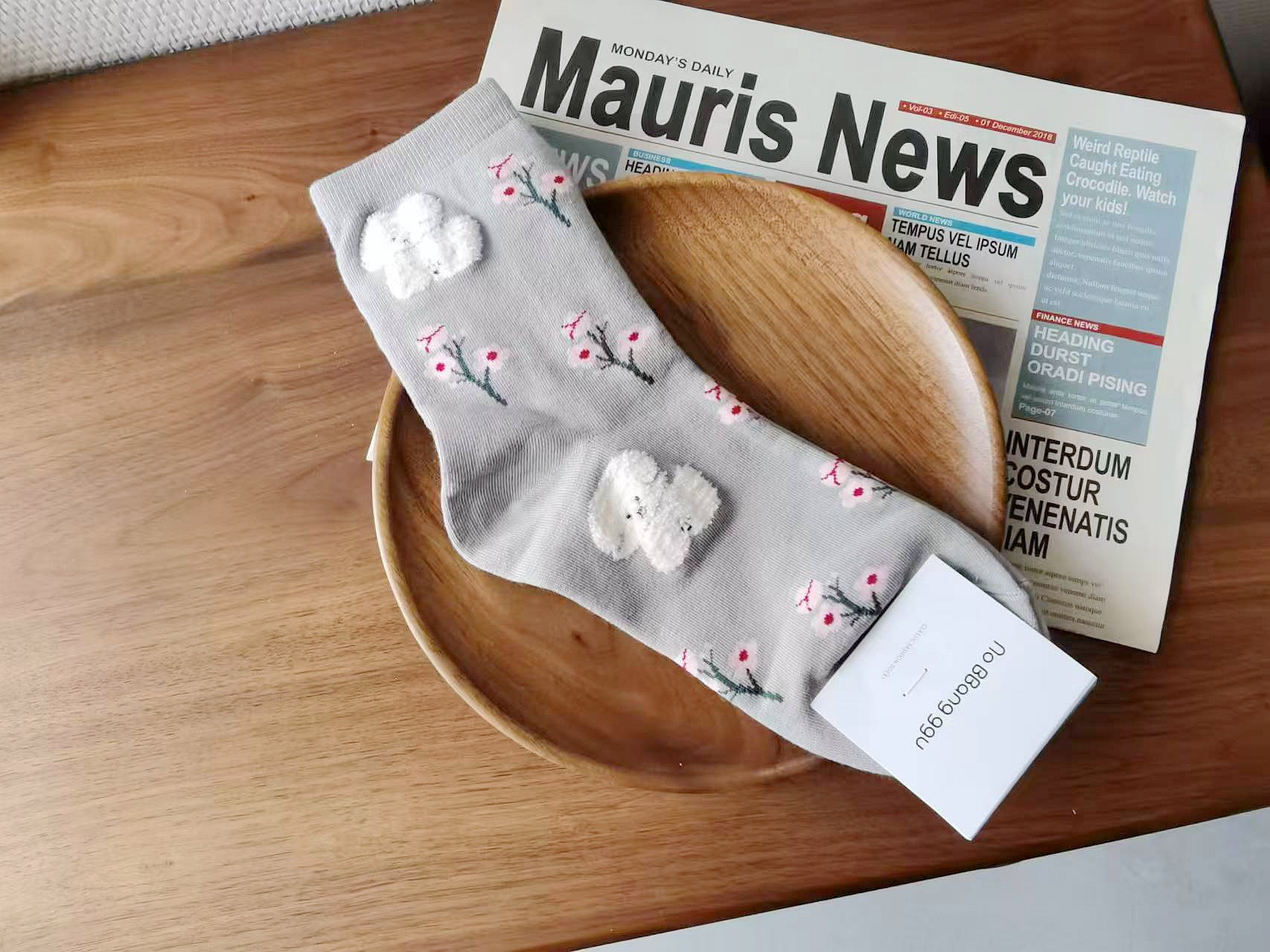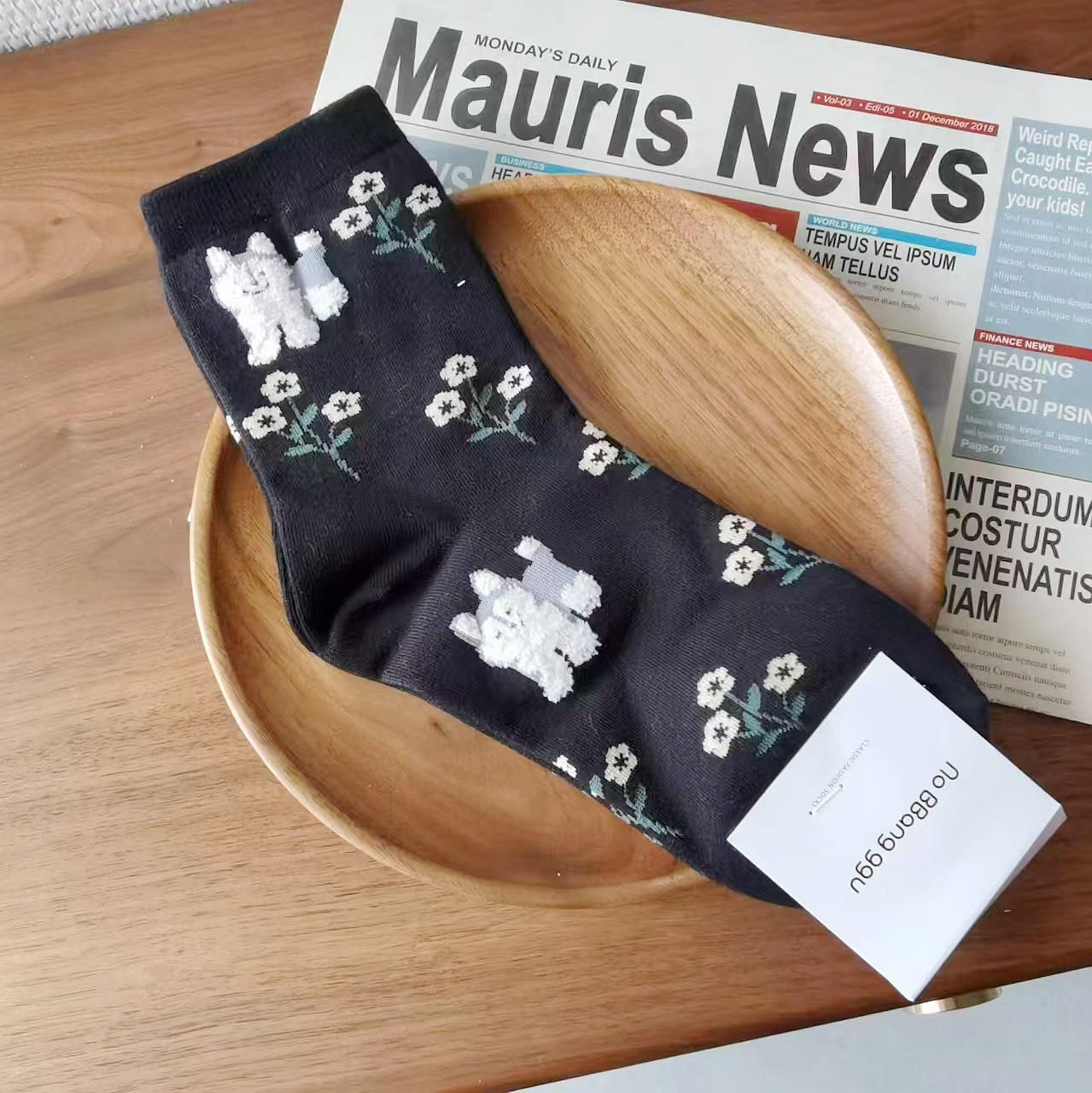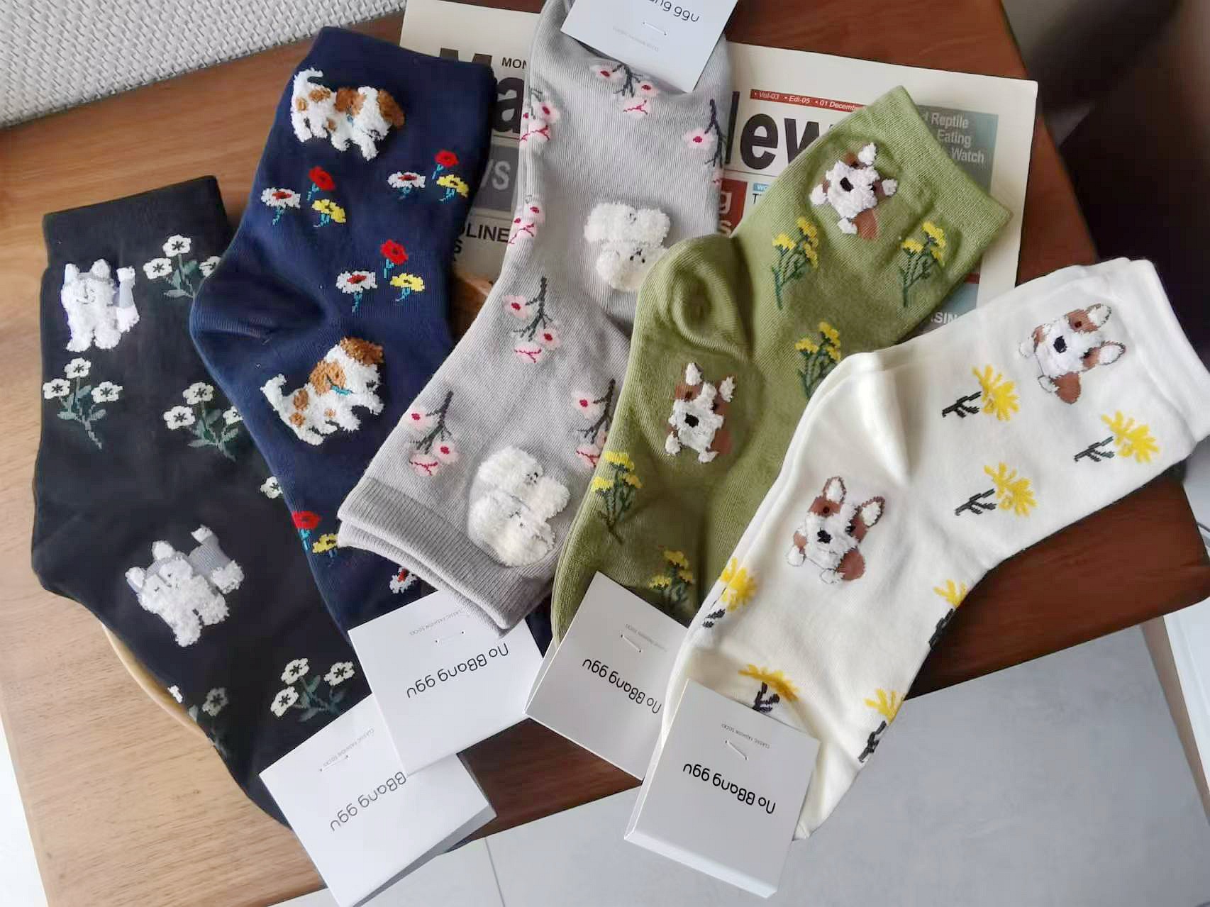 동대문 가을과 겨울 여성 면 양말 귀여운 개 꽃 하이 탑 성인 양말 NOBBANGGGU 한국 양말스토어 가기