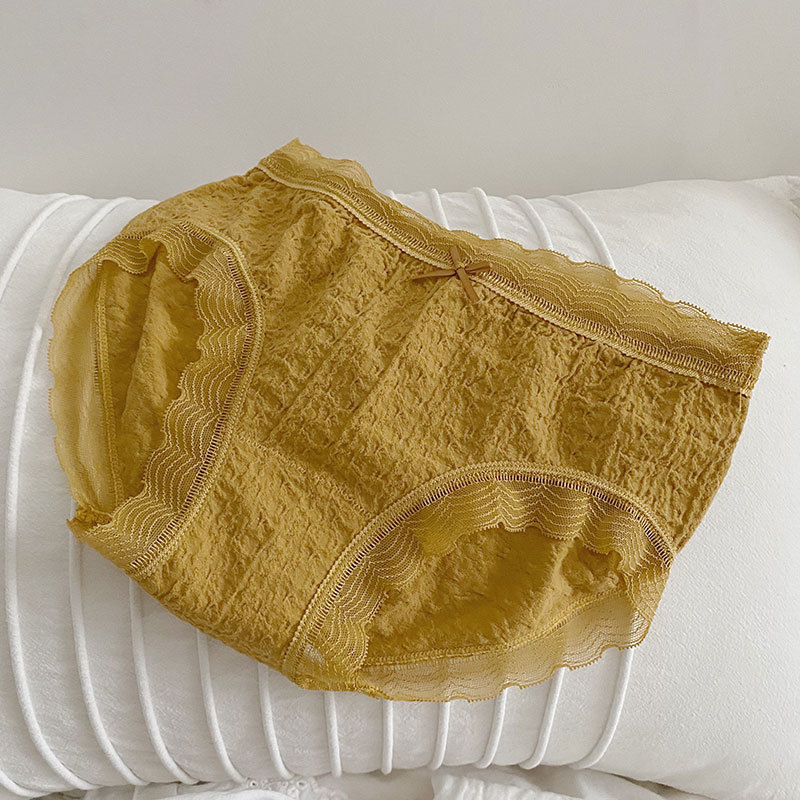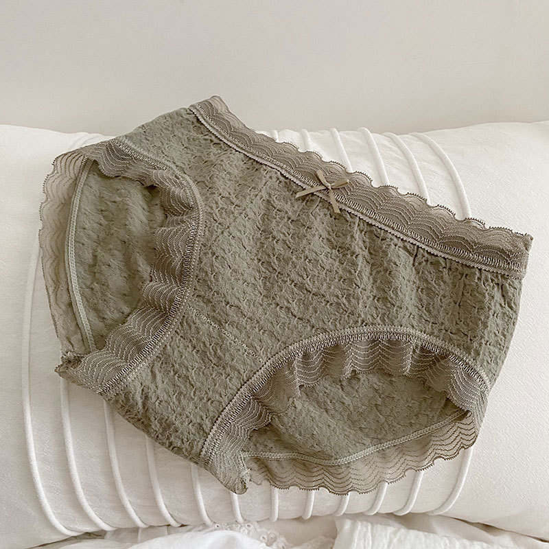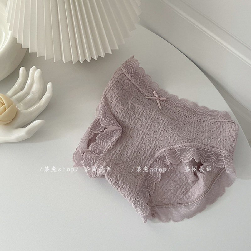 일본식 퍼프 소녀 속옷 여성용 중간 허리 가을과 겨울 부드러운 달콤한 레이스 면 가랑이 학생 속옷 여성 속옷
