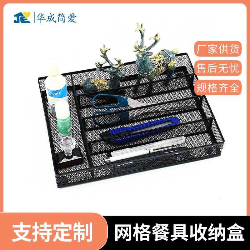 간단한 식기 보관 상자 그리드 배수 서랍 식기 금속 보관 상자 주방 레스토랑 나이프와 포크 보관 바구니