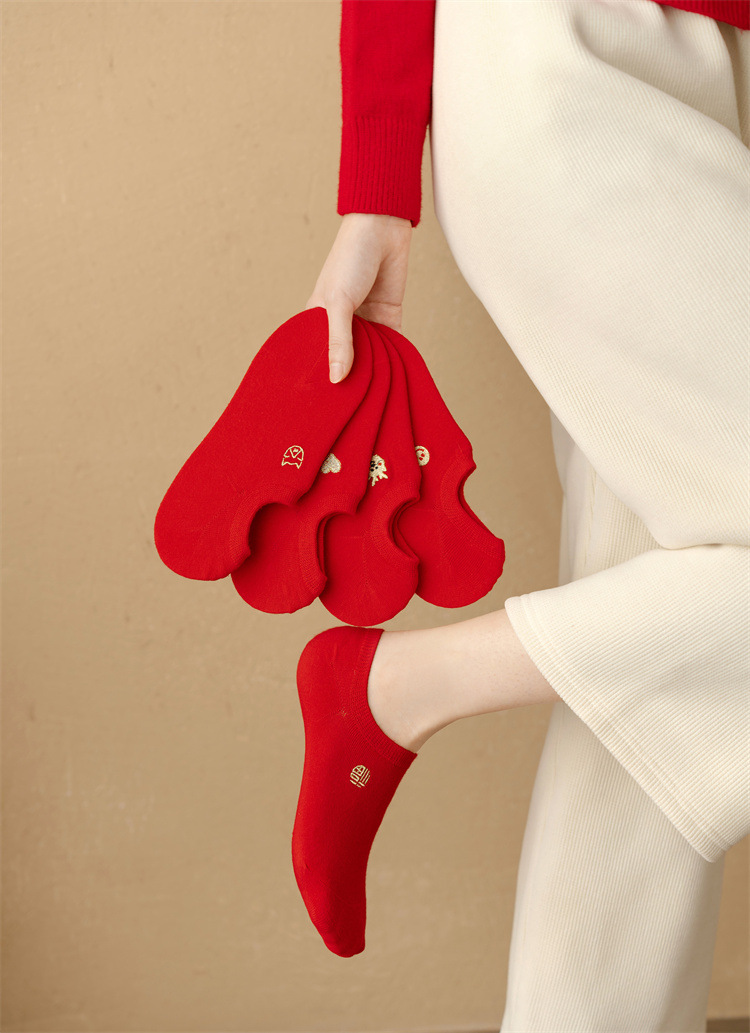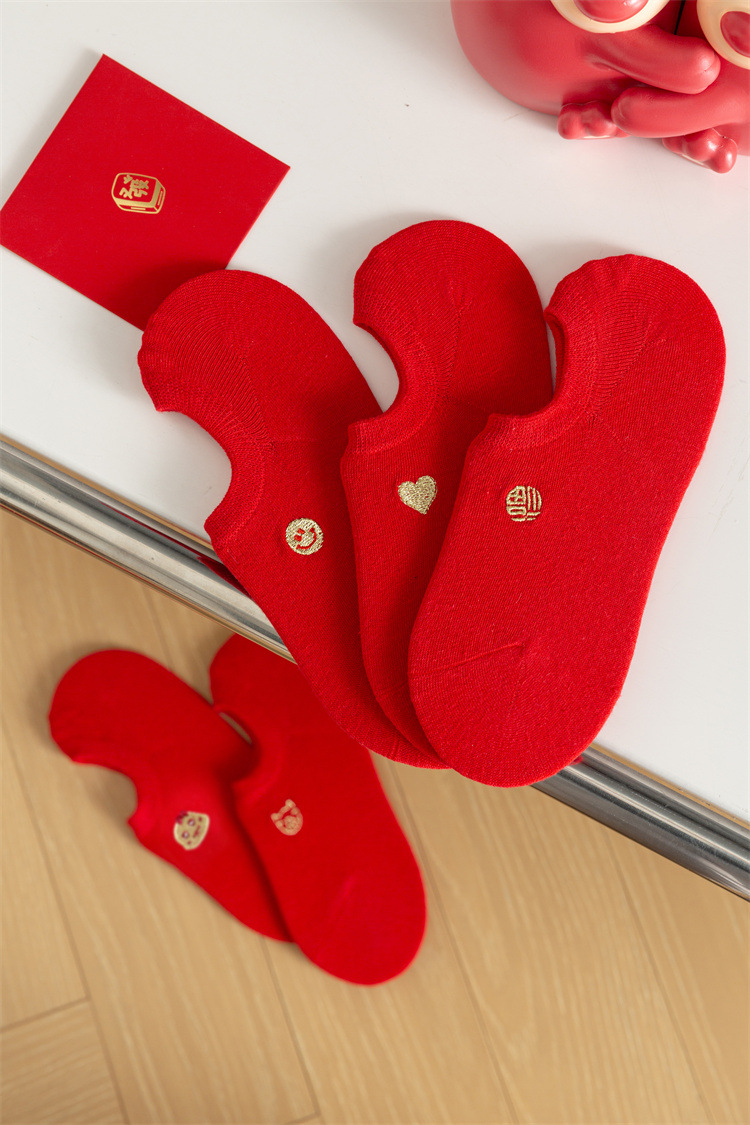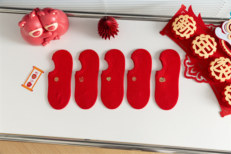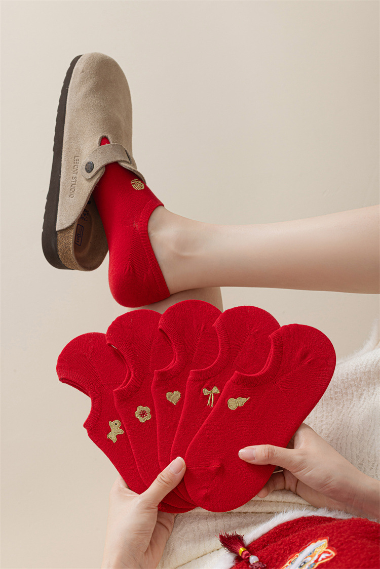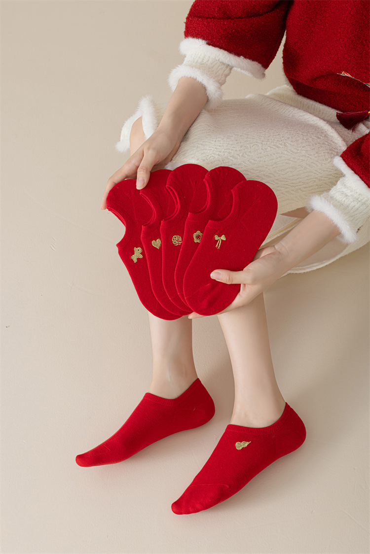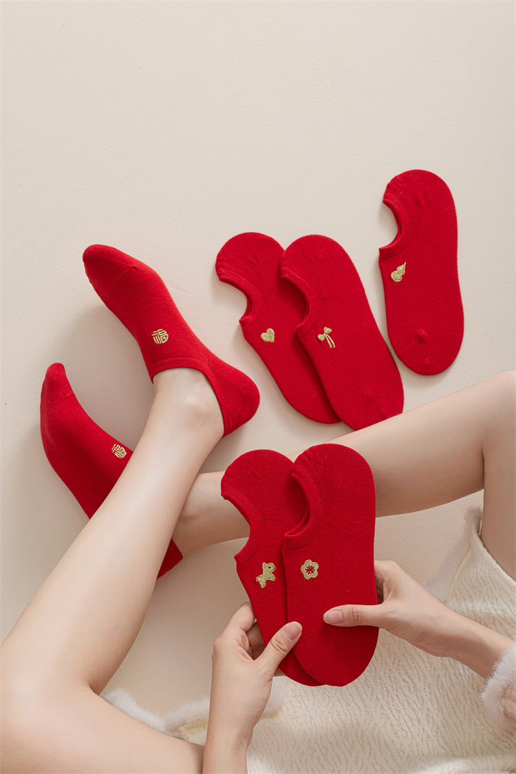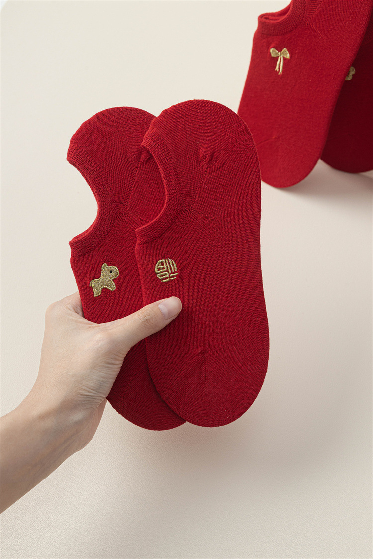2026년 신상 자수 행운의 뱀 여성용 원년 양말 실리콘 미끄럼 방지 빨간 양말 신혼 양말스토어 가기
