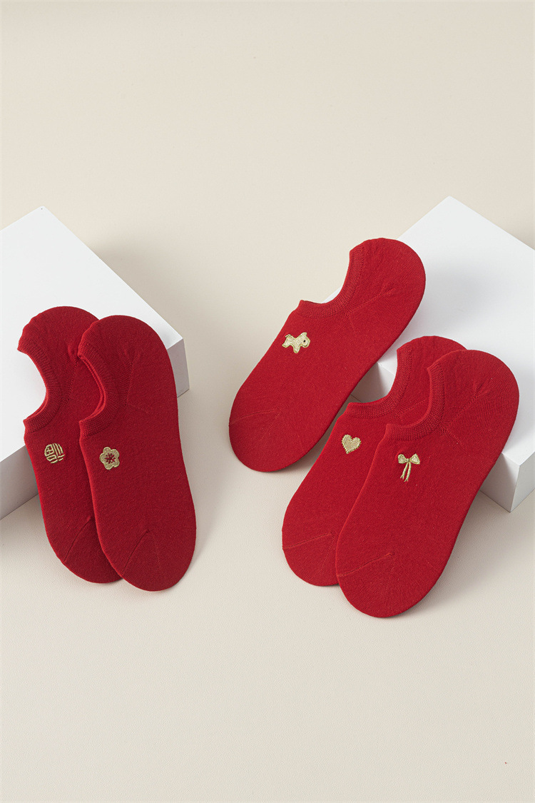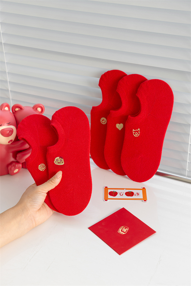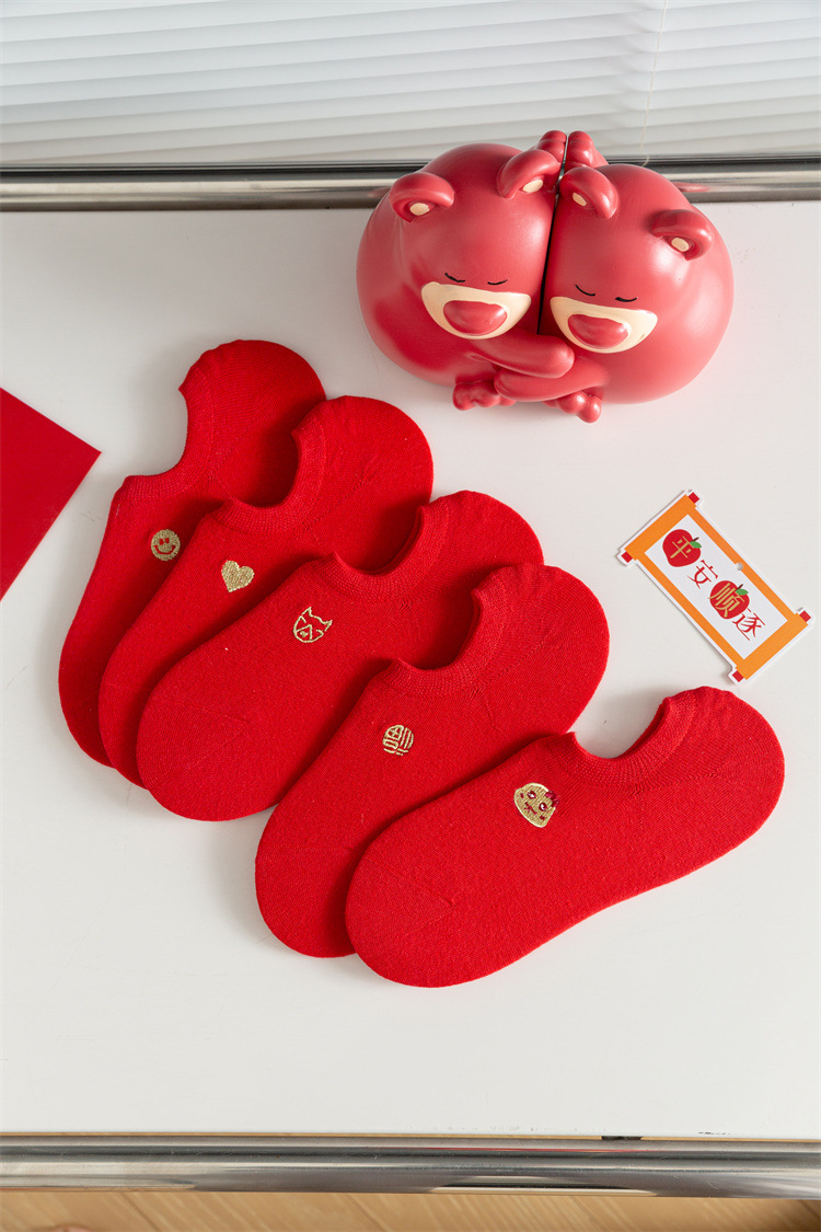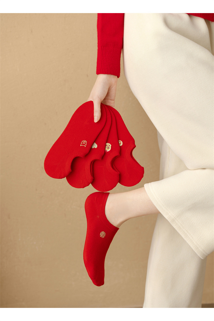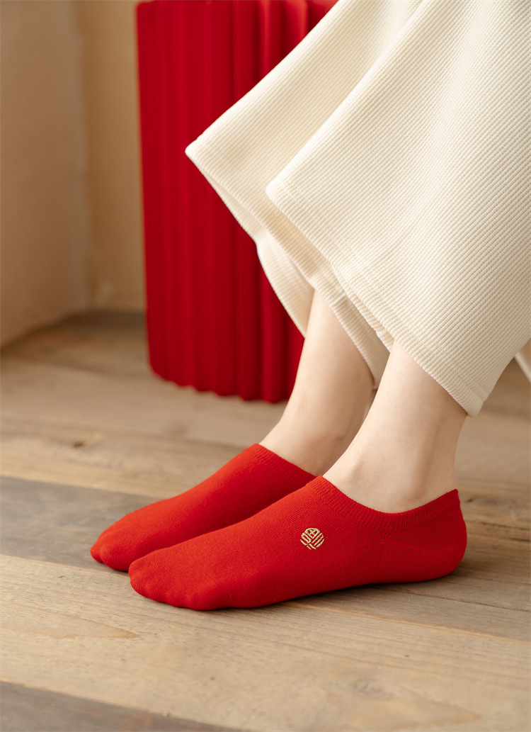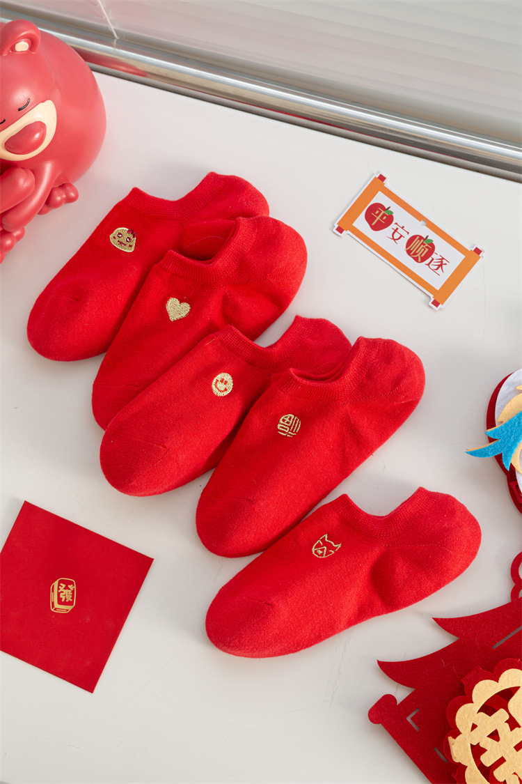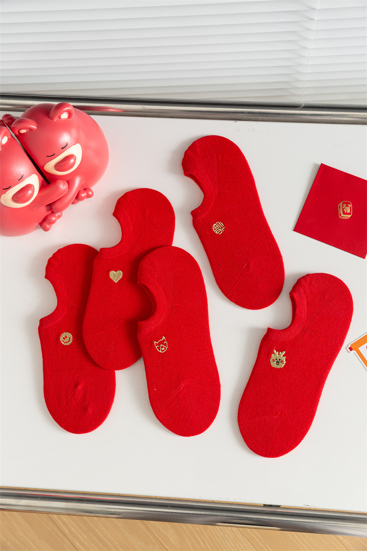 2026년 신상 자수 행운의 뱀 여성용 원년 양말 실리콘 미끄럼 방지 빨간 양말 신혼 양말스토어 가기
