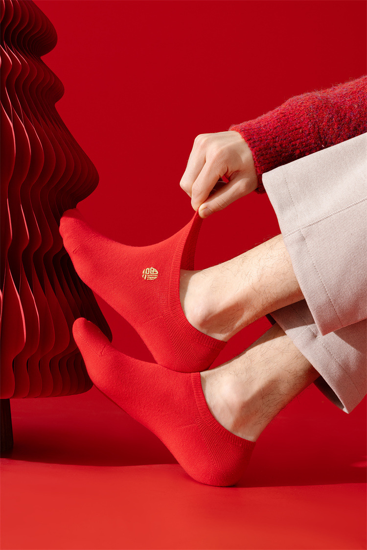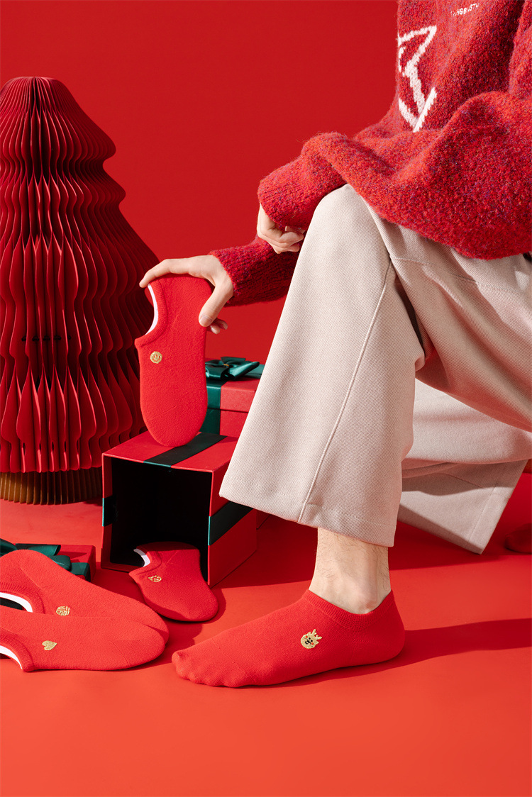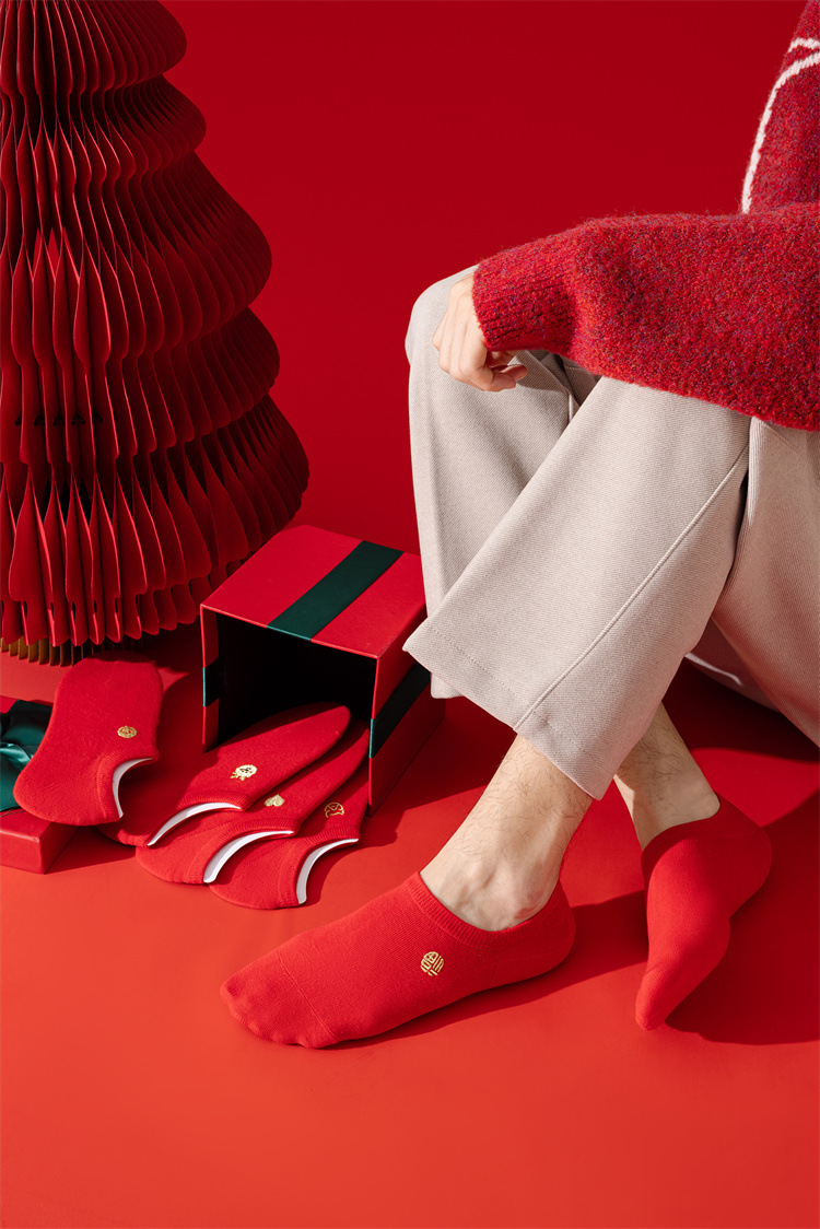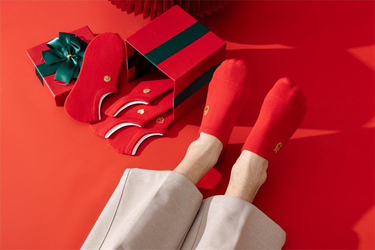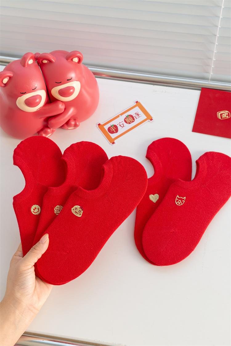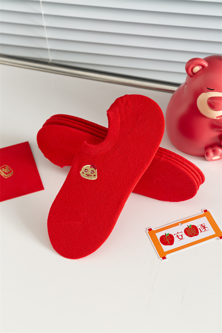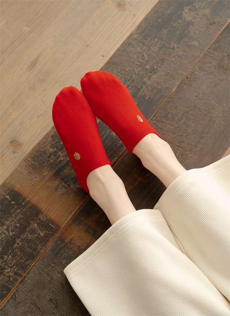 2026년 신상 자수 행운의 뱀 여성용 원년 양말 실리콘 미끄럼 방지 빨간 양말 신혼 양말스토어 가기