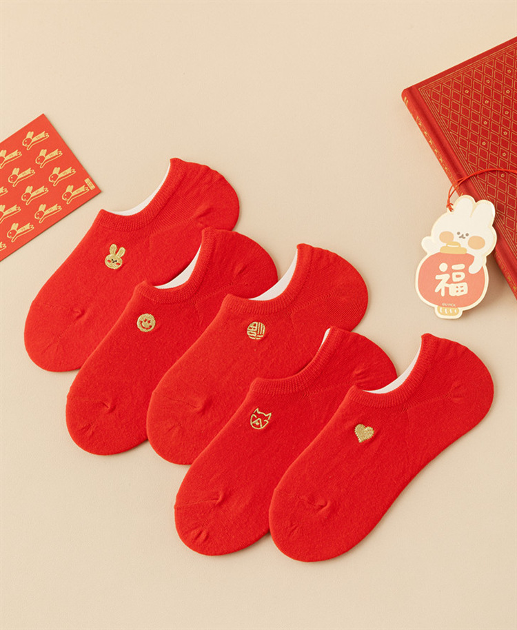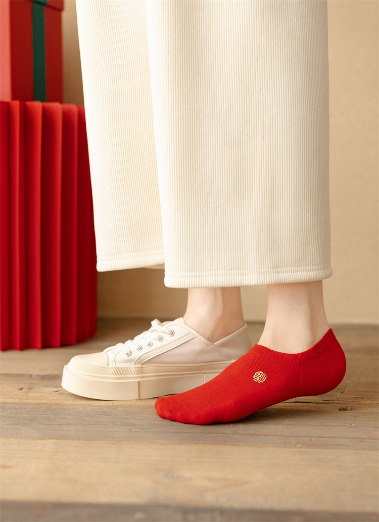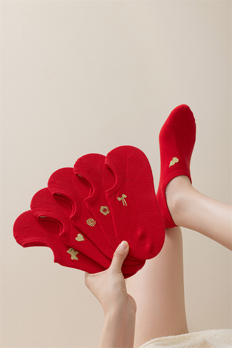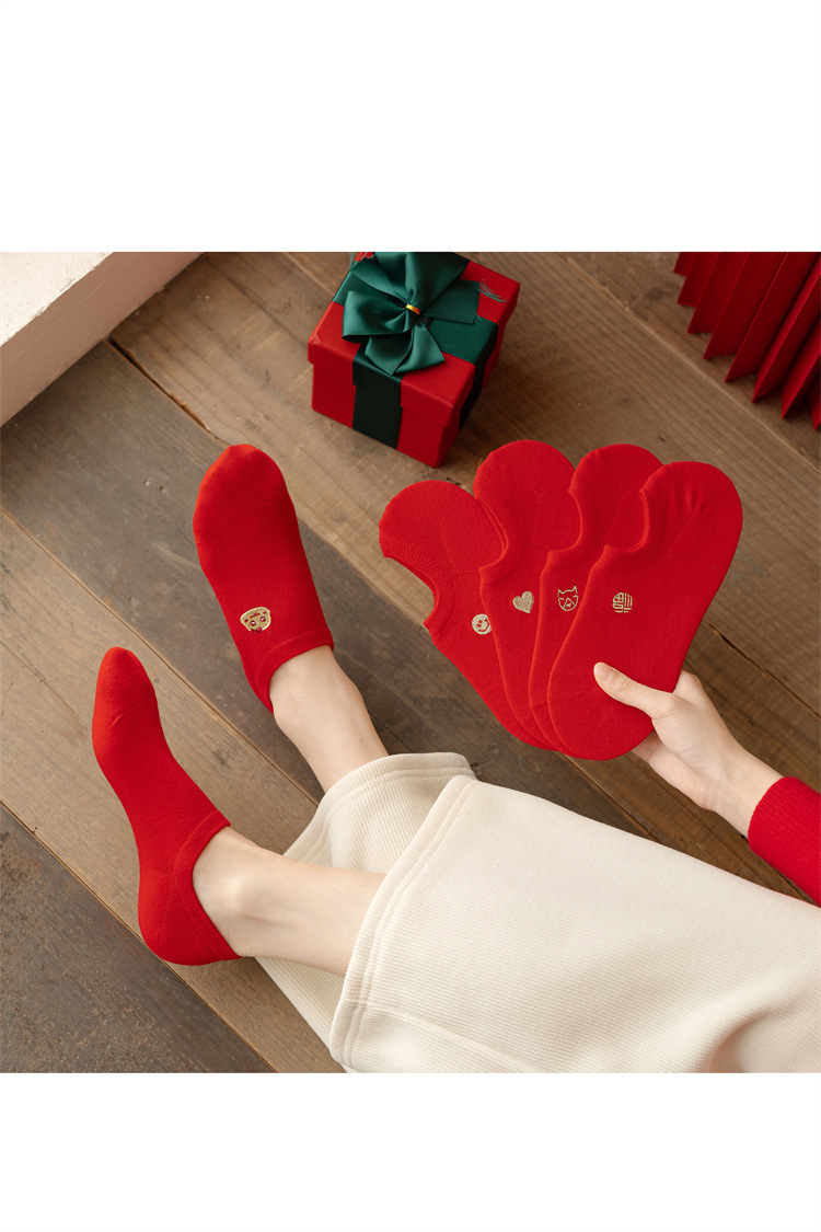 【产品名称】 刺绣幸运蛇女士本命年船袜