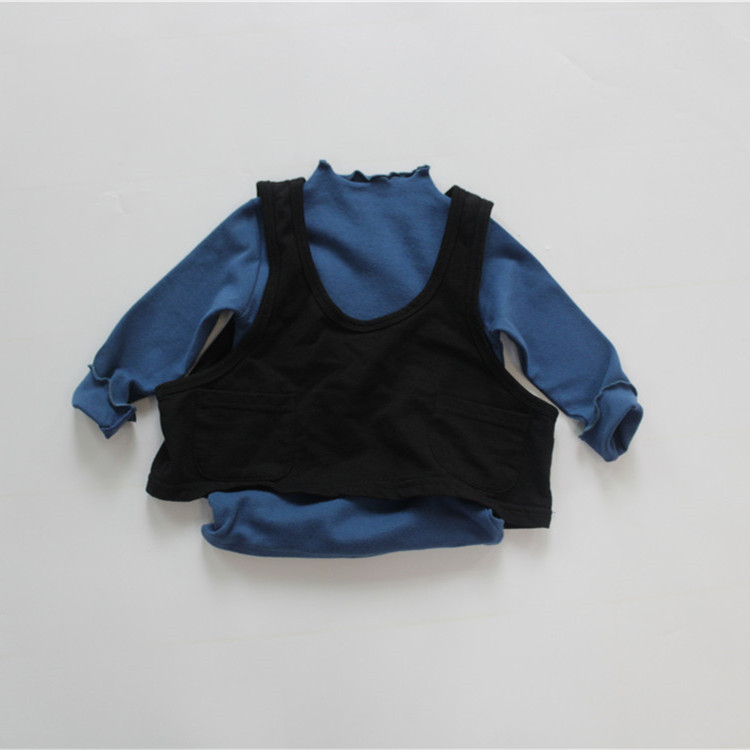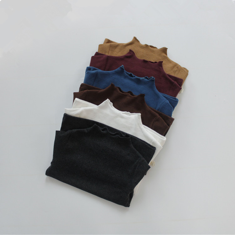 봄철 여아용 긴팔 티셔츠, 아동용 한국 스타일 단색 캐주얼 하이넥 상의, 남아용 A급 도매스토어 가기