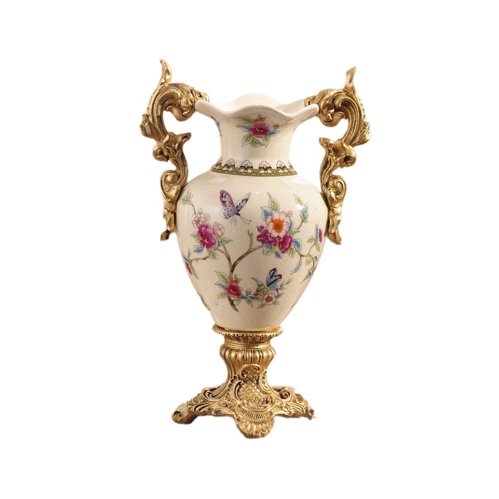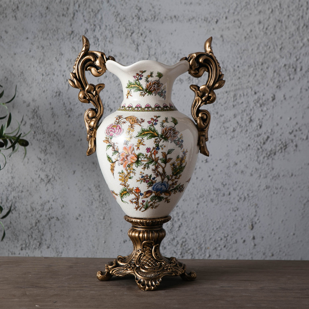 미국식 양귀형 트로피 세라믹 꽃병, 고급스러운 빌라 가정 거실 장식용 유럽식 대형 꽃병스토어 가기