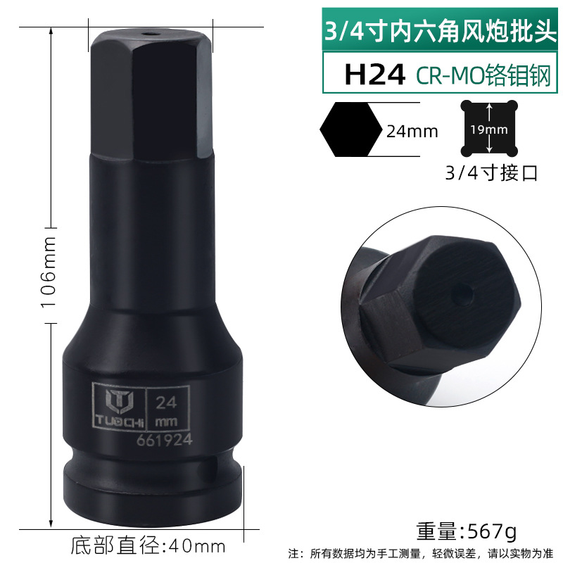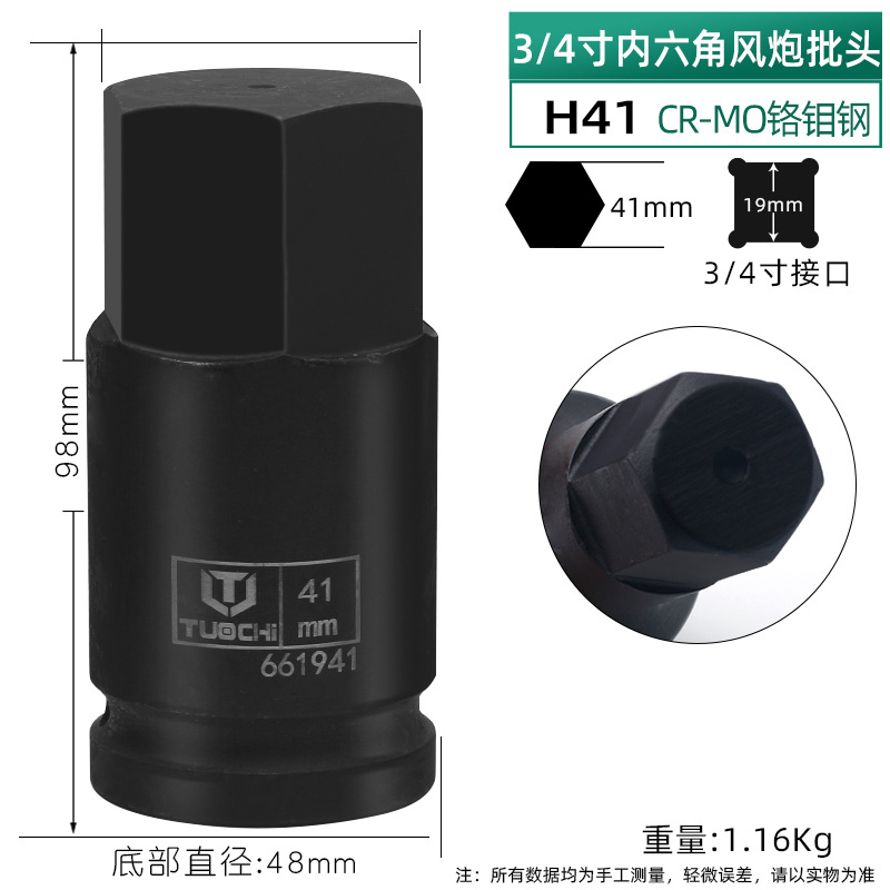 육각 소켓 스크루 드라이버 슬리브 공압식 3/4 인치 중형 에어건 공압식 육각형 소켓 헤드 19 칸 구멍으로 길어스토어 가기