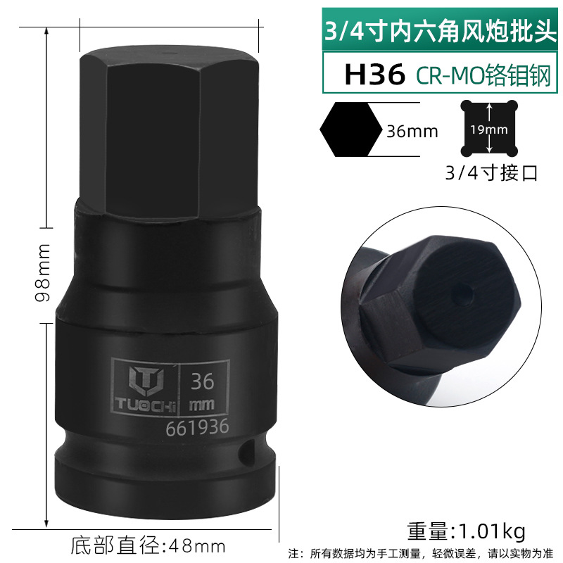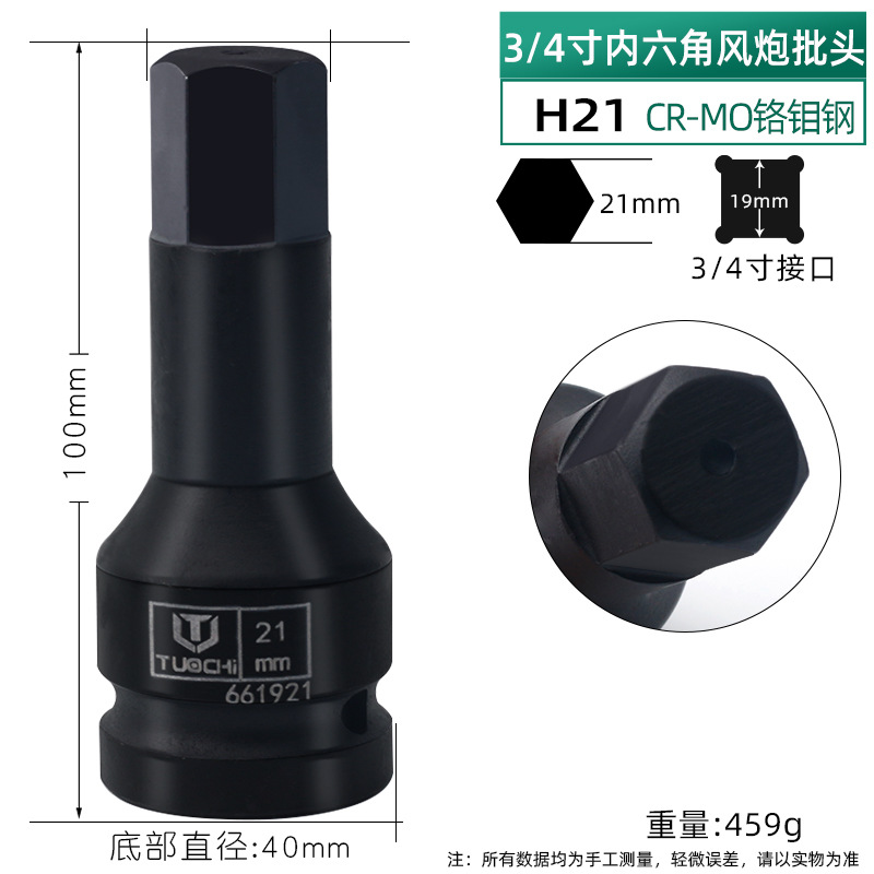 • 重型风炮套筒3/4套筒头中风炮加长六角套筒汽修轮胎套筒气动加厚8.5折扣价:8.5