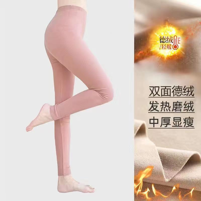 벨벳 따뜻한 바지 여성용 내부 착용 내부 난방 하이 웨이스트 롱 존스 여성용 두꺼운 탄성 배꼽 꽉 가을과 겨울 레깅스