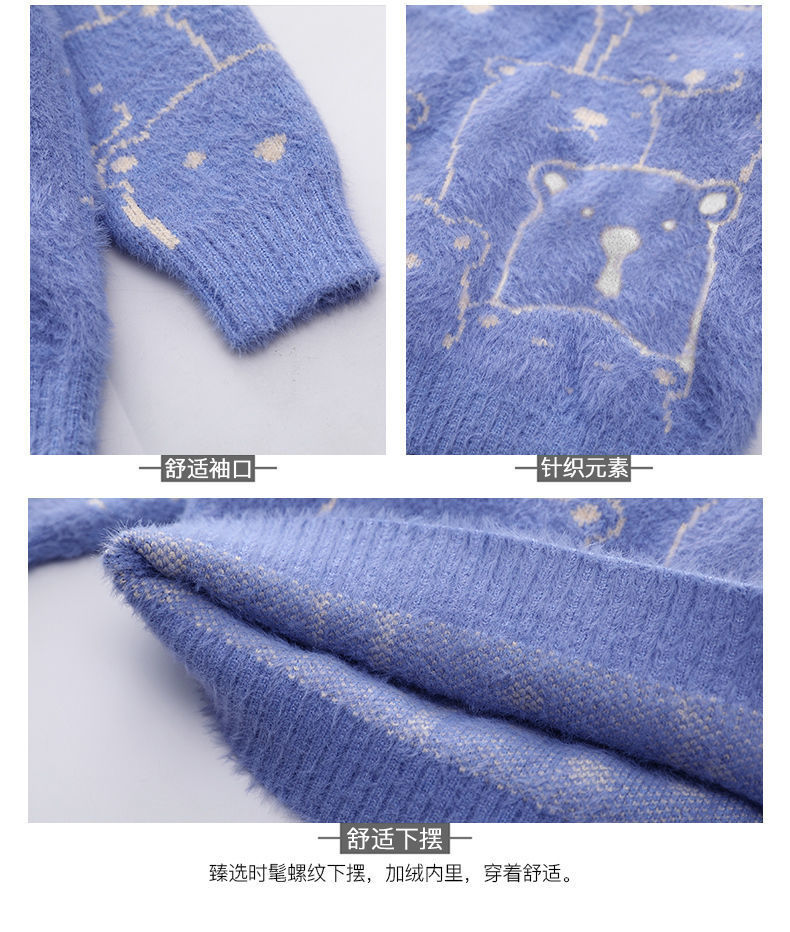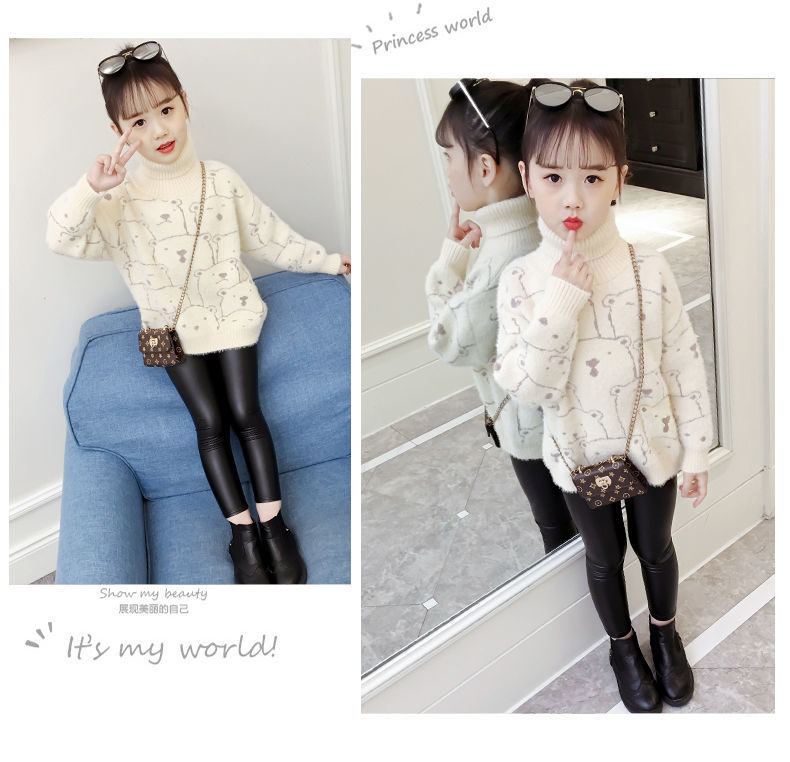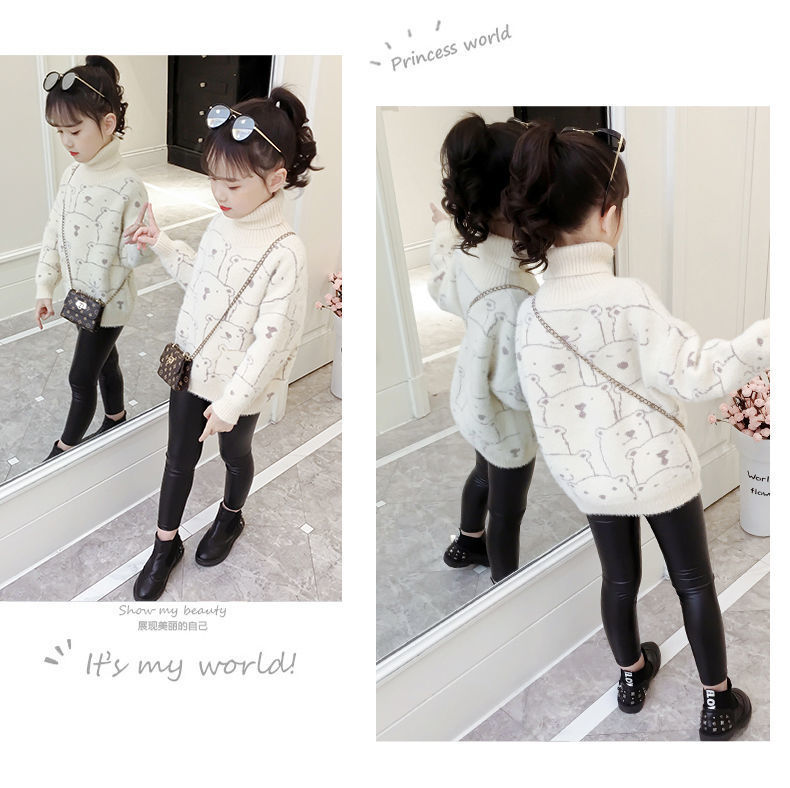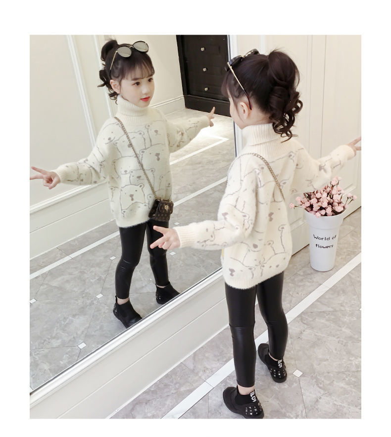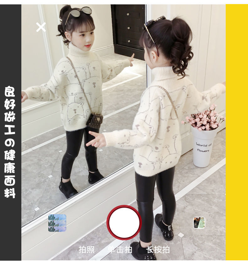 여아용 스웨터 신상 하이넥 밍크 벨벳 한국 스타일 겨울 두꺼운 인조 밍크 모피 중대형 어린이용 플러스 벨벳 이너웨어
