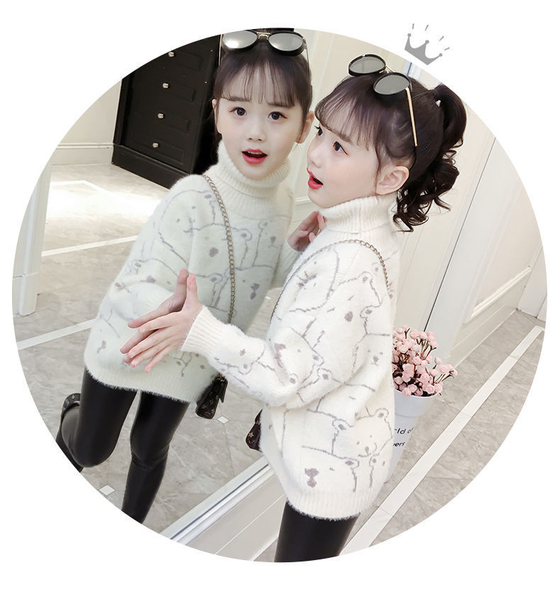 여아용 스웨터 신상 하이넥 밍크 벨벳 한국 스타일 겨울 두꺼운 인조 밍크 모피 중대형 어린이용 플러스 벨벳 이너웨어스토어 가기