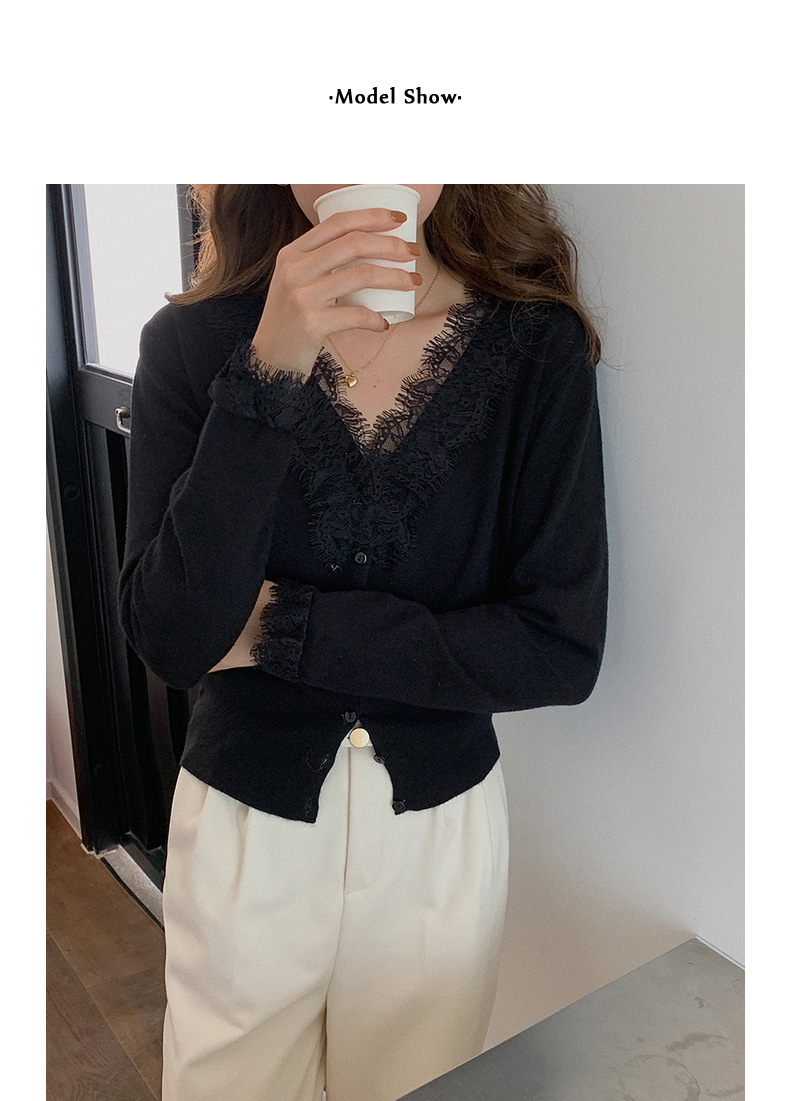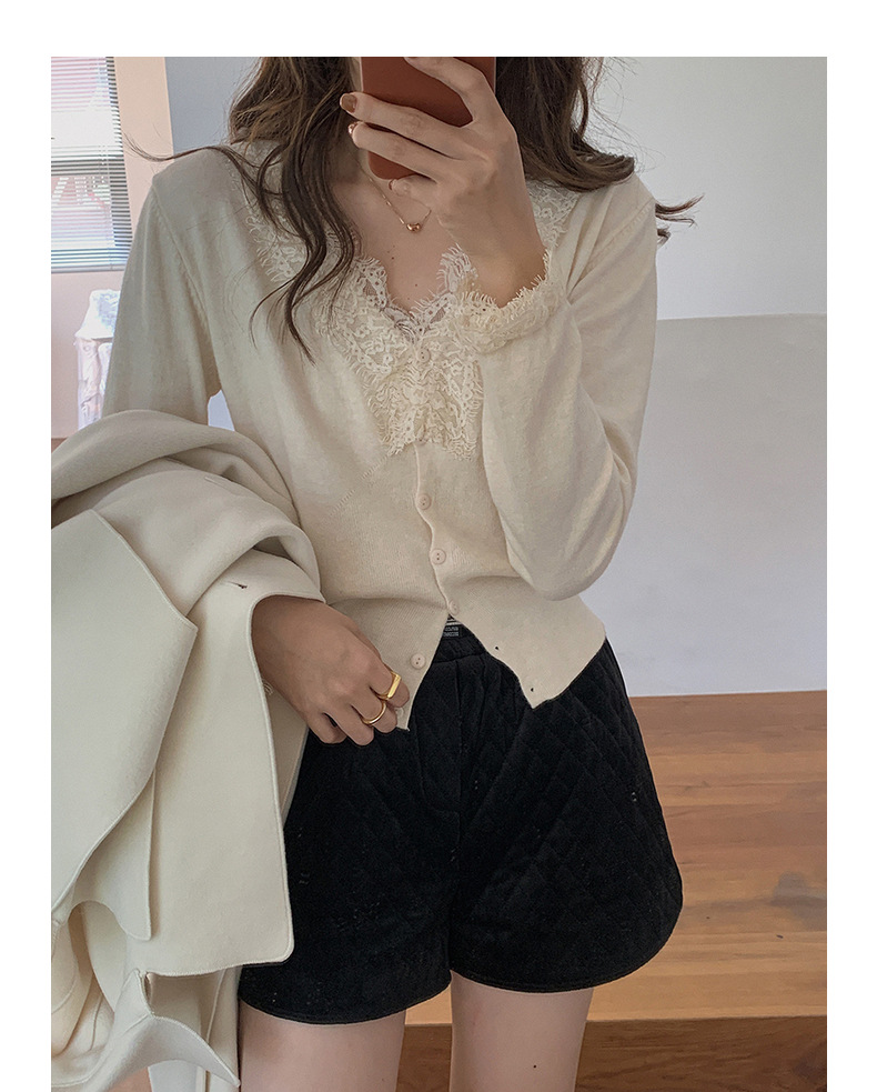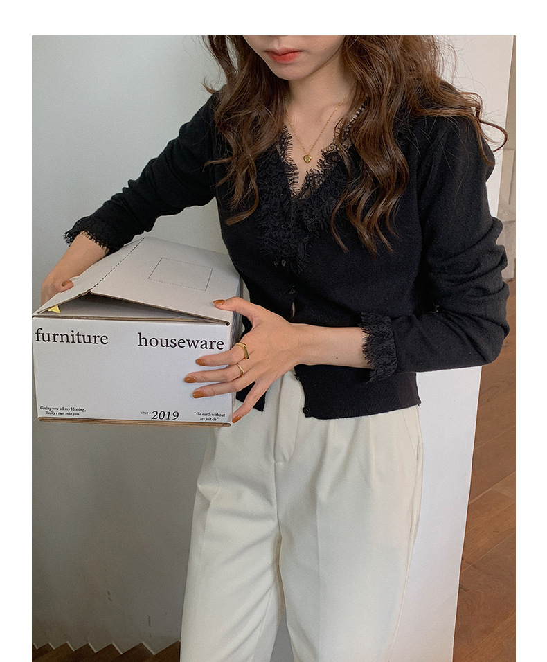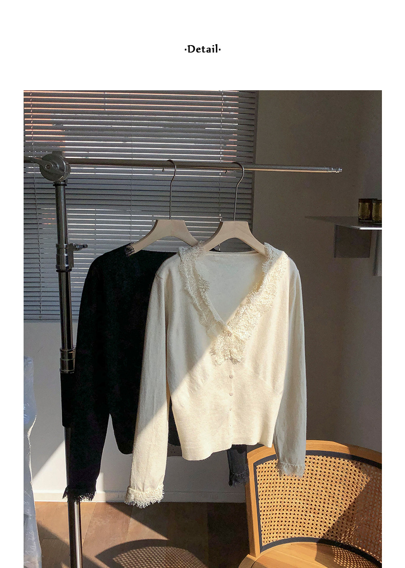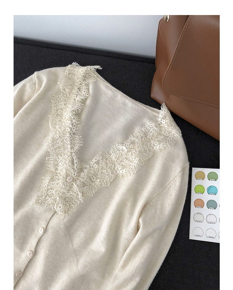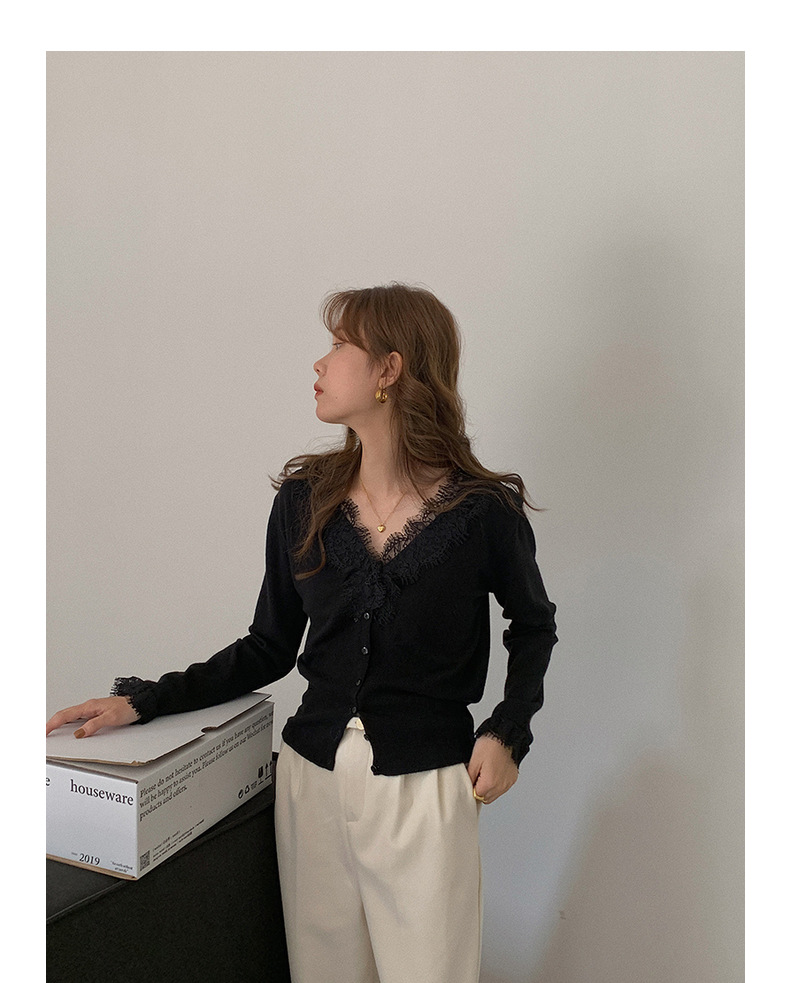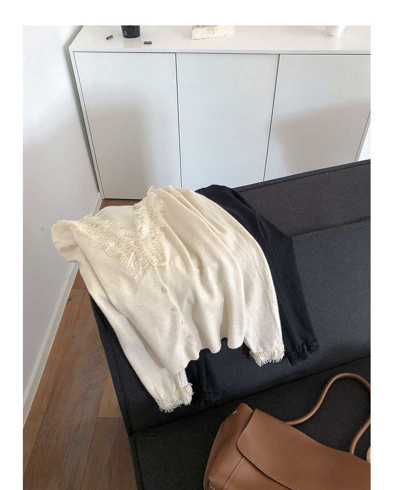 [송밍] 디자인 센스 니쉬 레이스 니트 카디건 여성 가을 새 V넥 슬림핏 우아한 탑 W797H