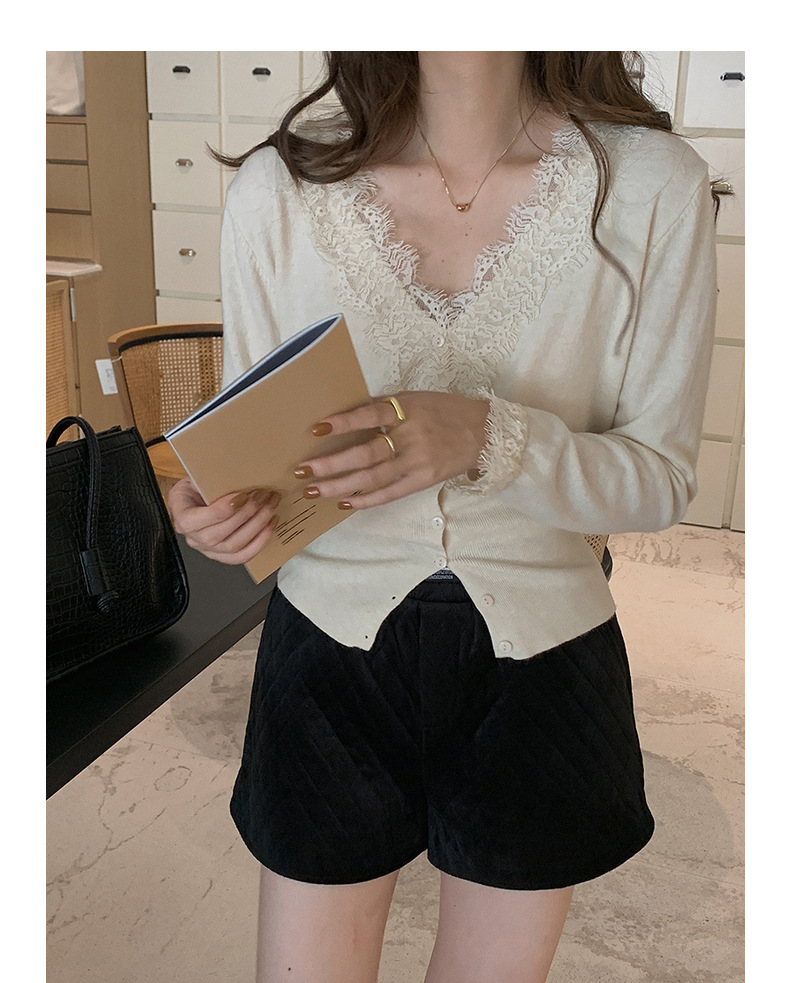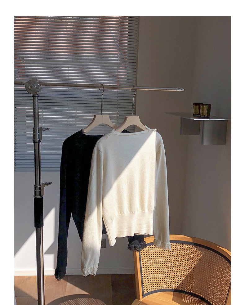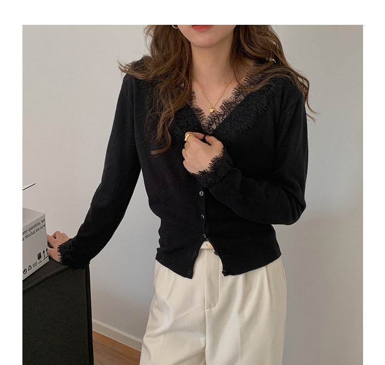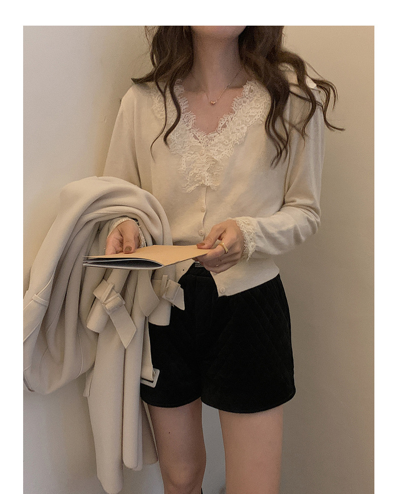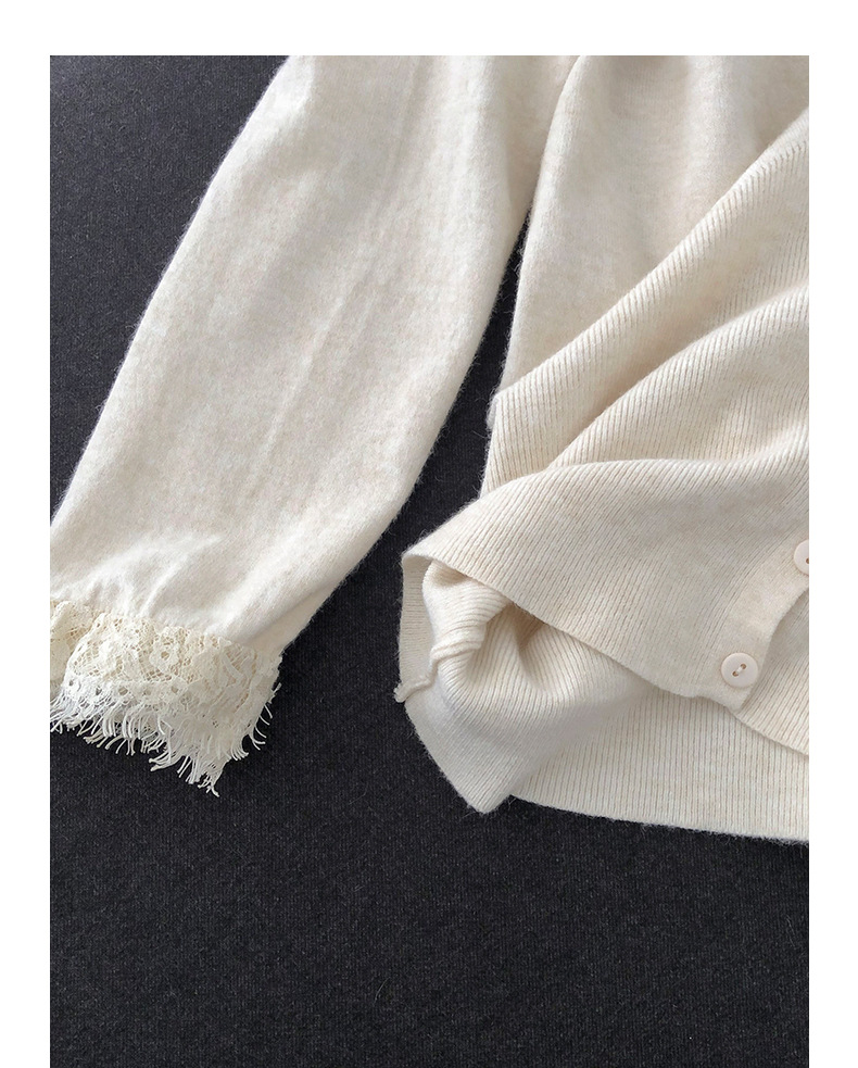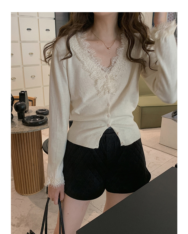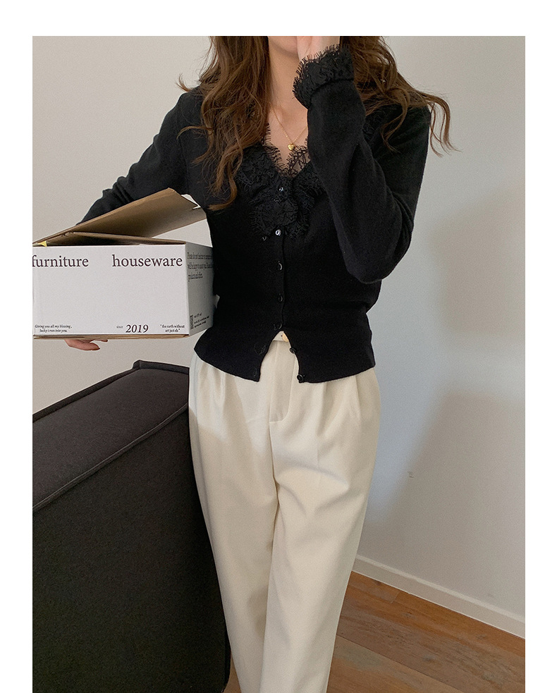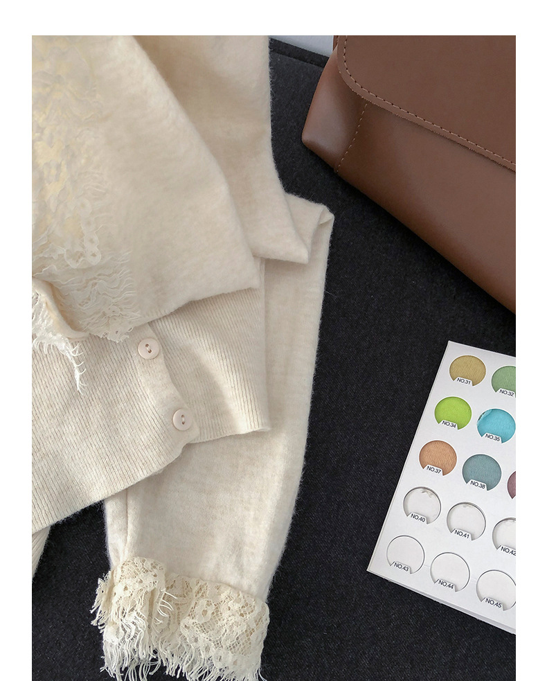 [송밍] 디자인 센스 니쉬 레이스 니트 카디건 여성 가을 새 V넥 슬림핏 우아한 탑 W797H