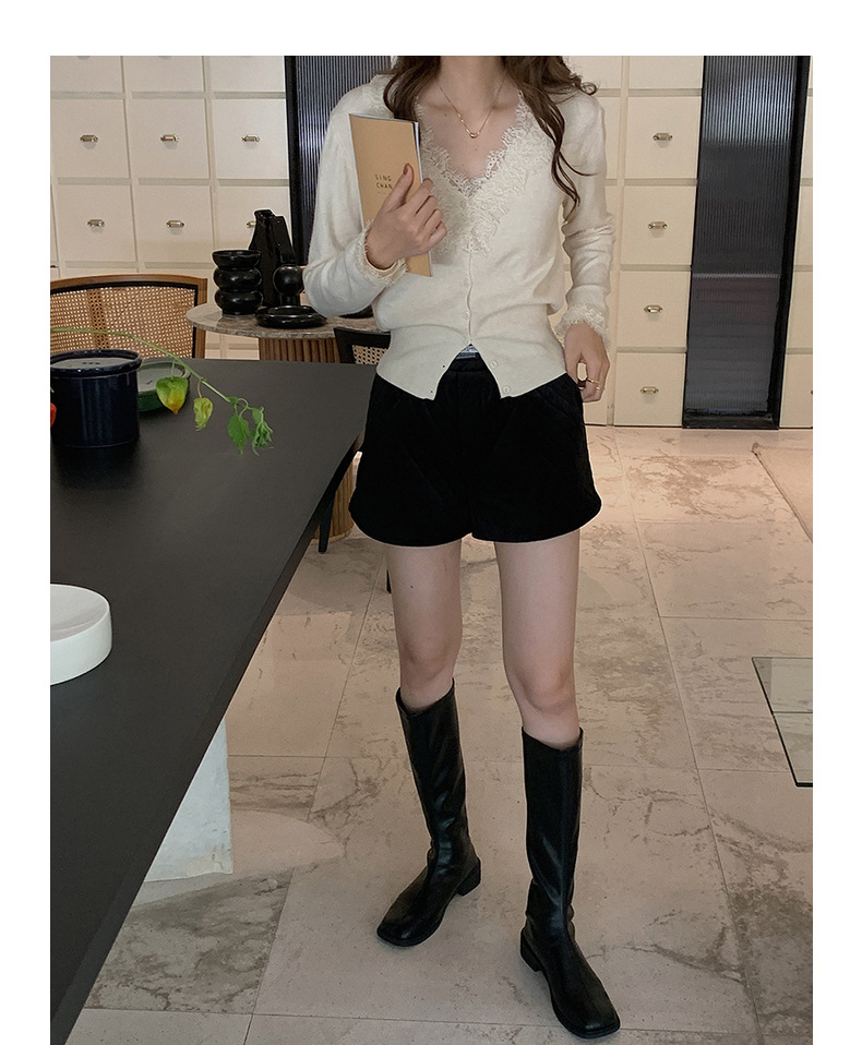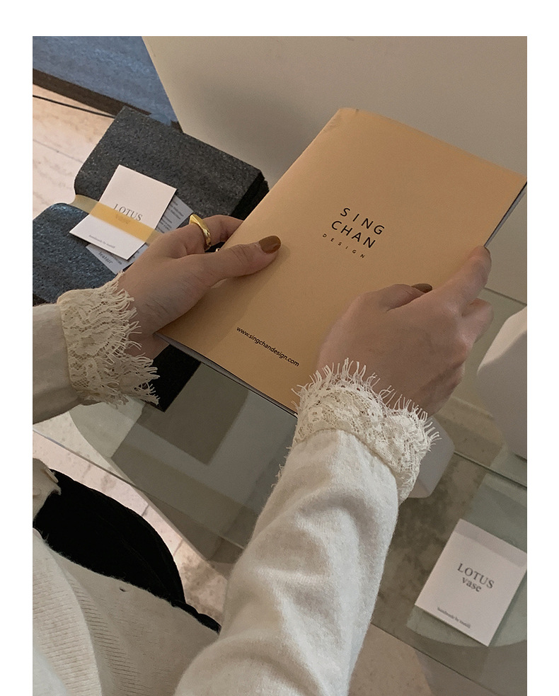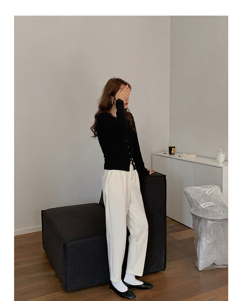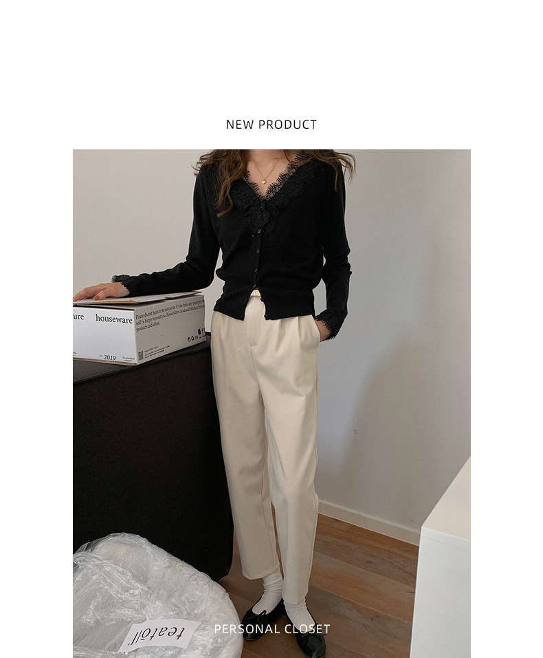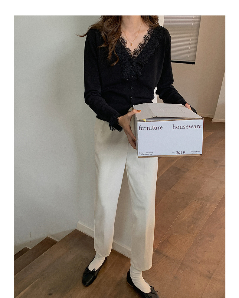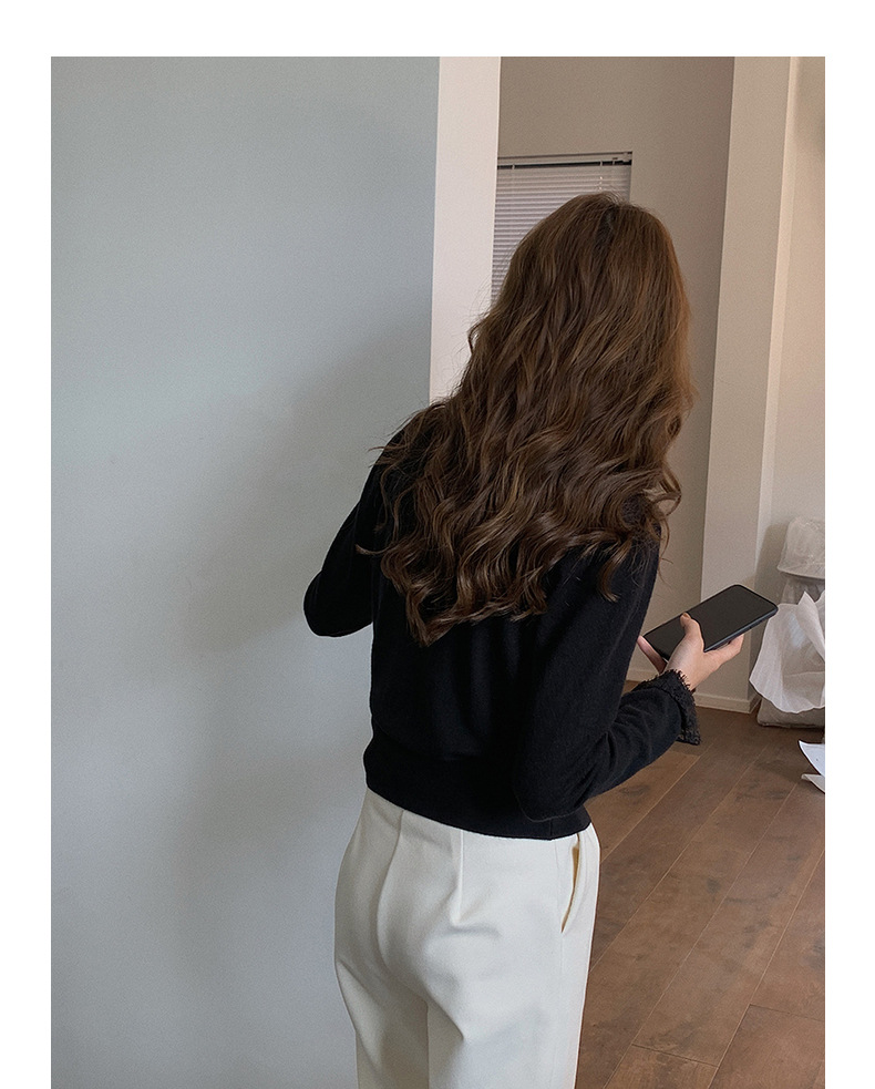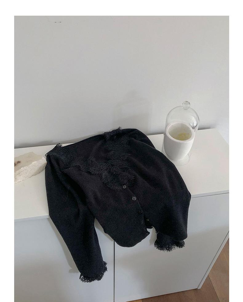 [송밍] 디자인 센스 니쉬 레이스 니트 카디건 여성 가을 새 V넥 슬림핏 우아한 탑 W797H