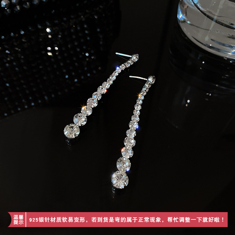 925 스털링 실버 바늘 우아한 플래시 다이아몬드 긴 술 귀걸이 한국 독특한 인터넷 연예인 고급 과장된 귀걸이 귀걸이