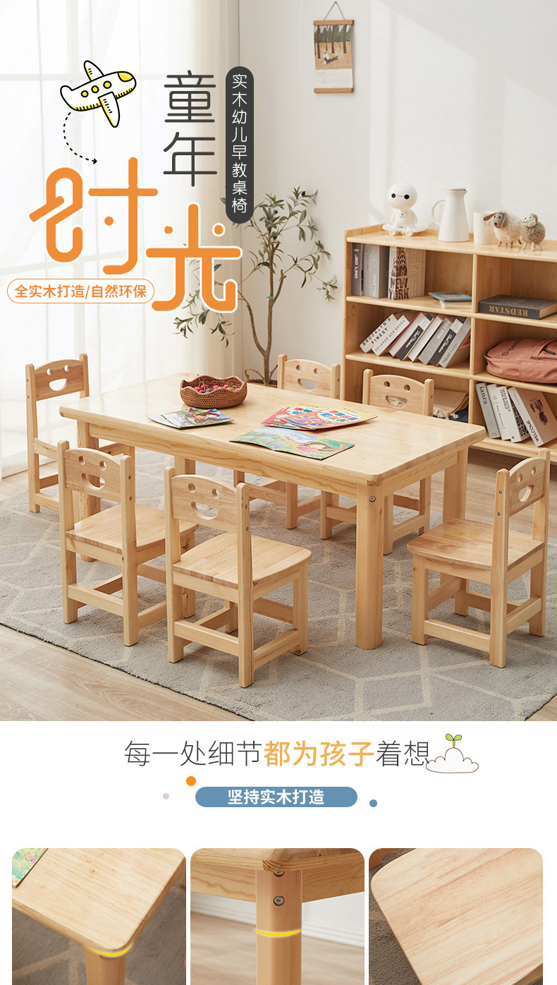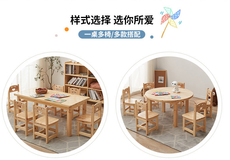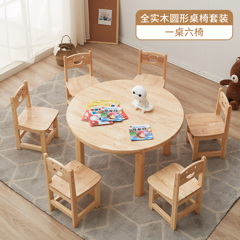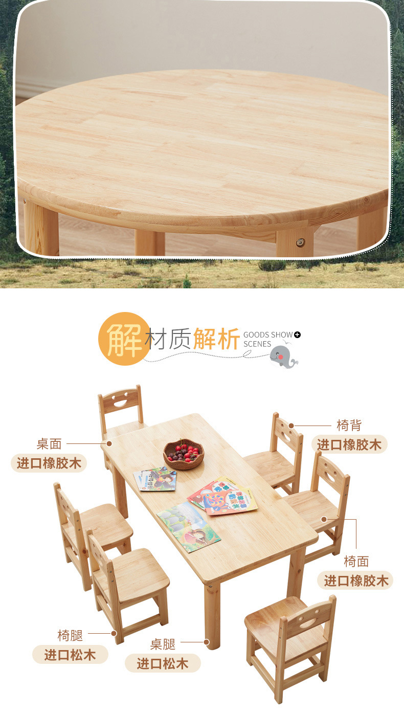 유치원 원목 작은 사각 테이블 몬테소리 교구 테이블과 의자 미술 그림 수업 조기 교육 가정용 두꺼운 작은 원형 테이블 제조업체스토어 가기