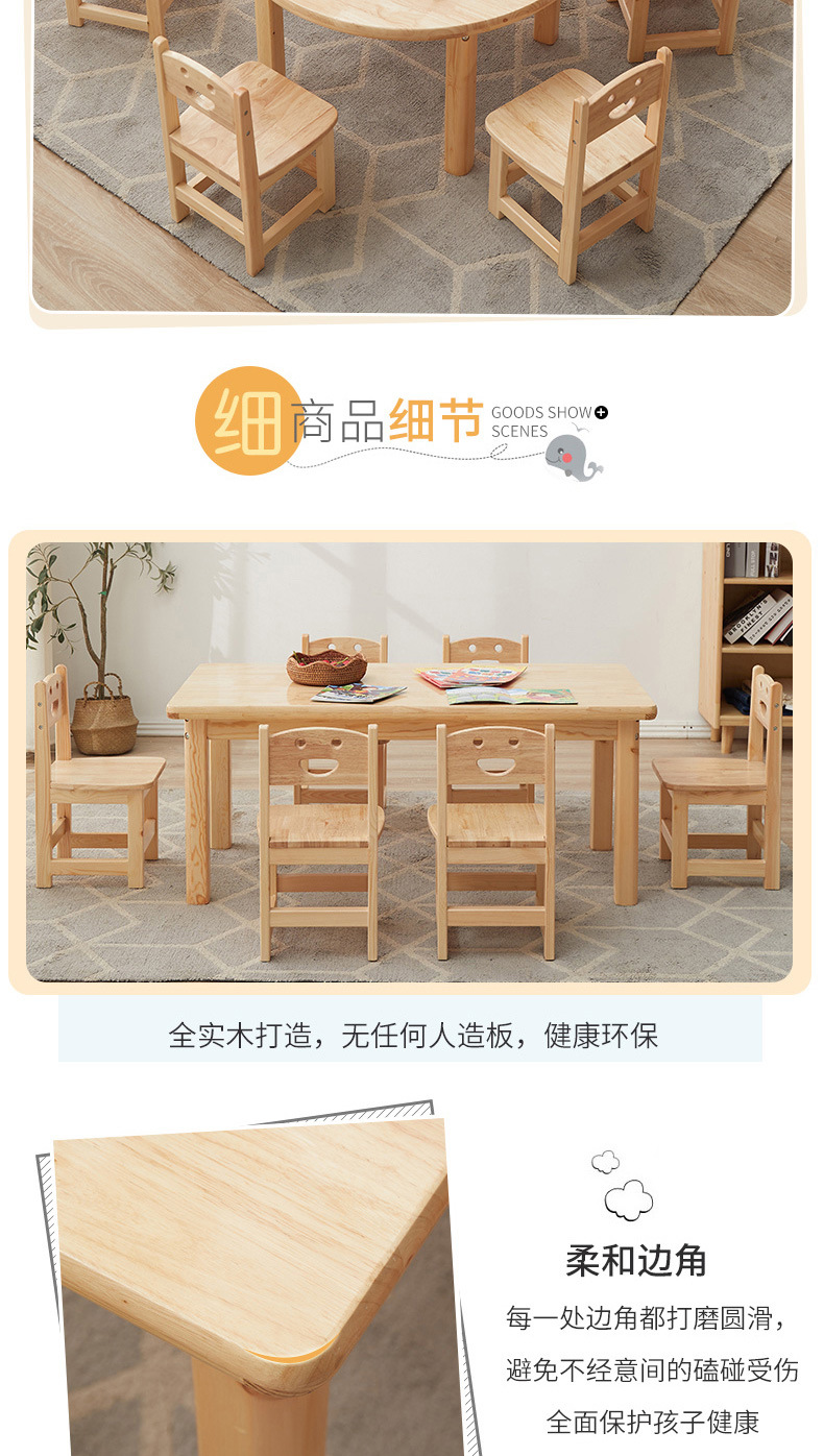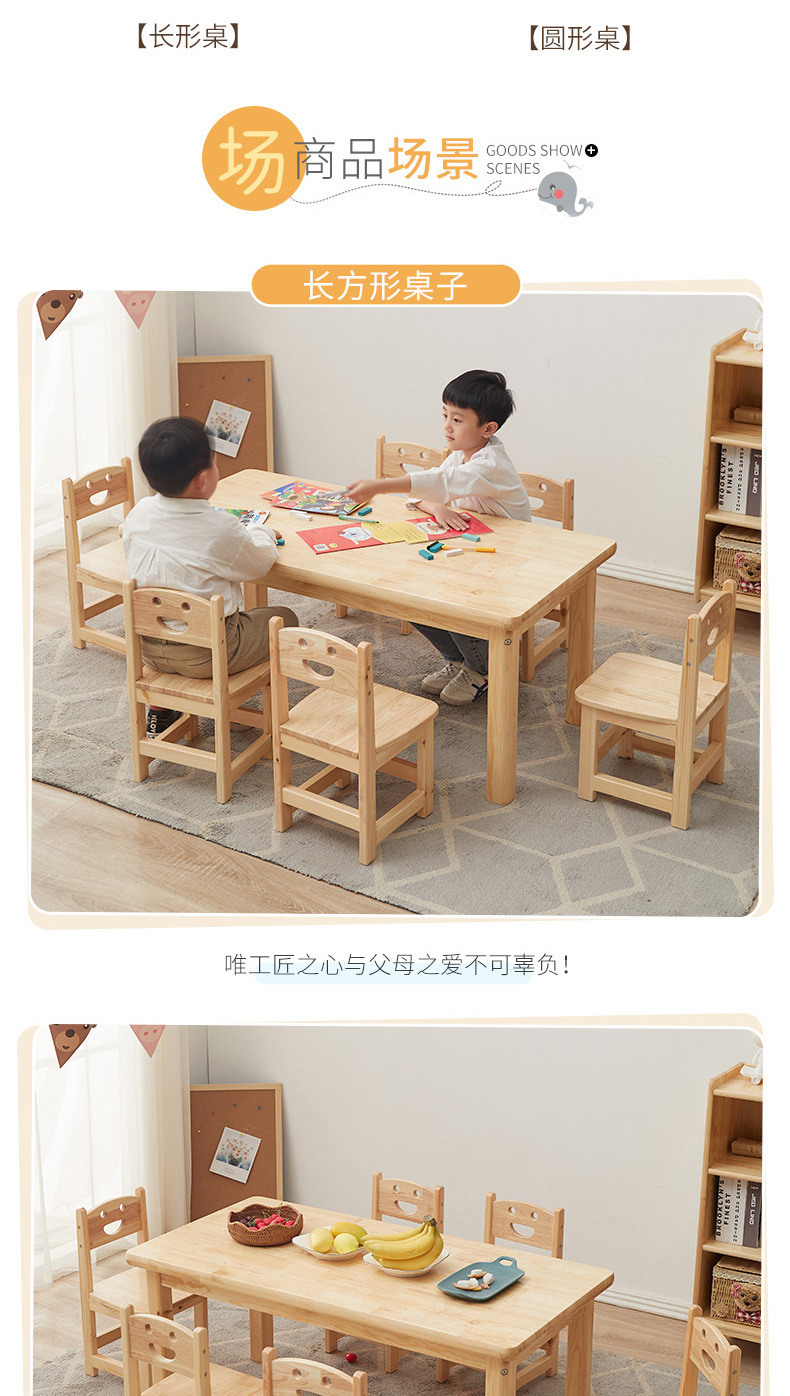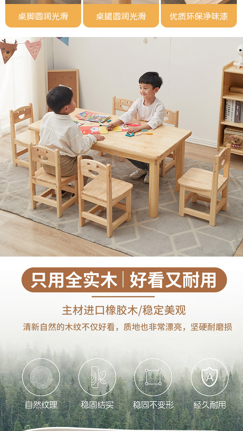 유치원 원목 작은 사각 테이블 몬테소리 교구 테이블과 의자 미술 그림 수업 조기 교육 가정용 두꺼운 작은 원형 테이블 제조업체스토어 가기