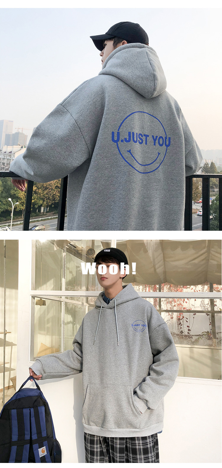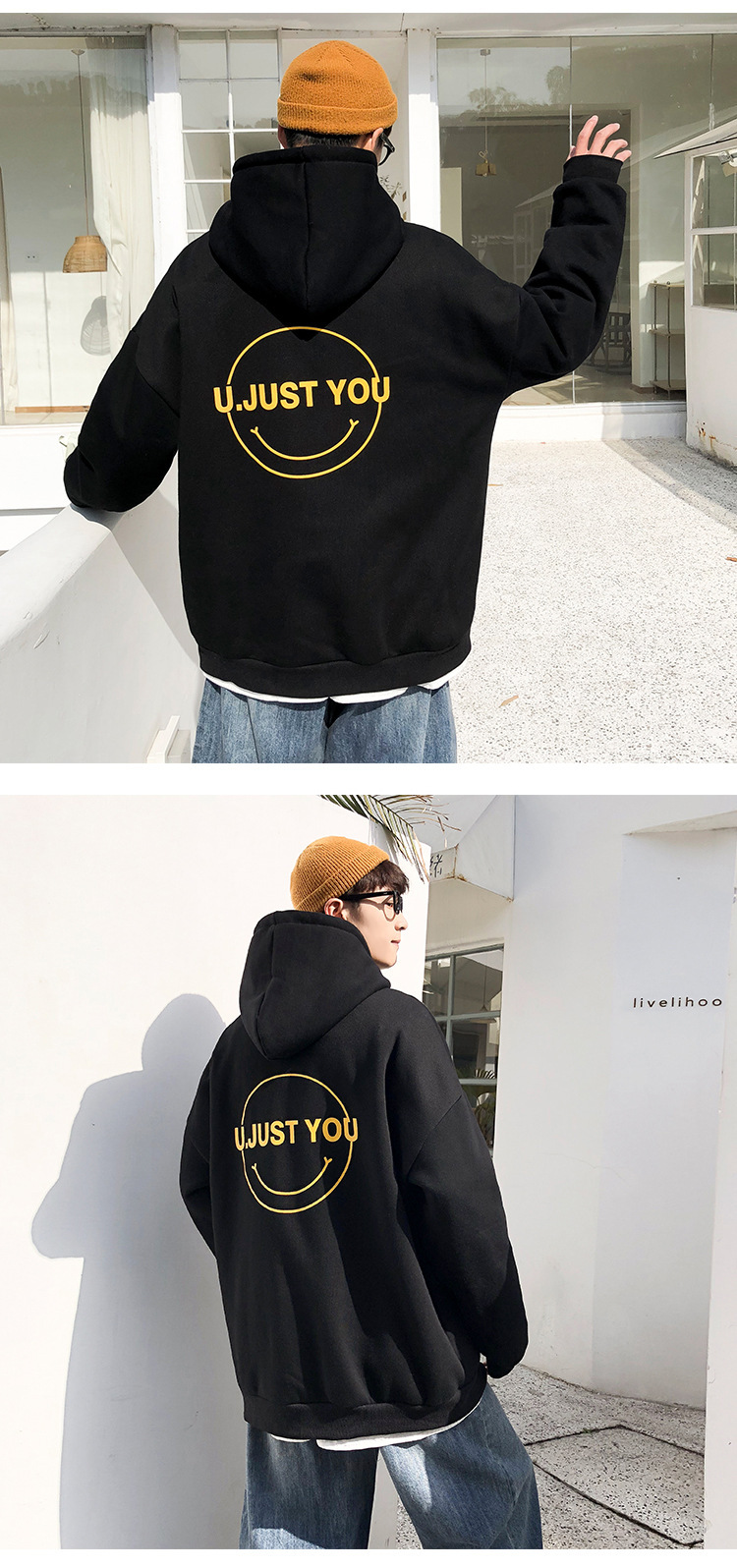连帽卫衣男韩版潮牌宽松情侣款港风秋冬加绒大码运动上衣休闲外套
