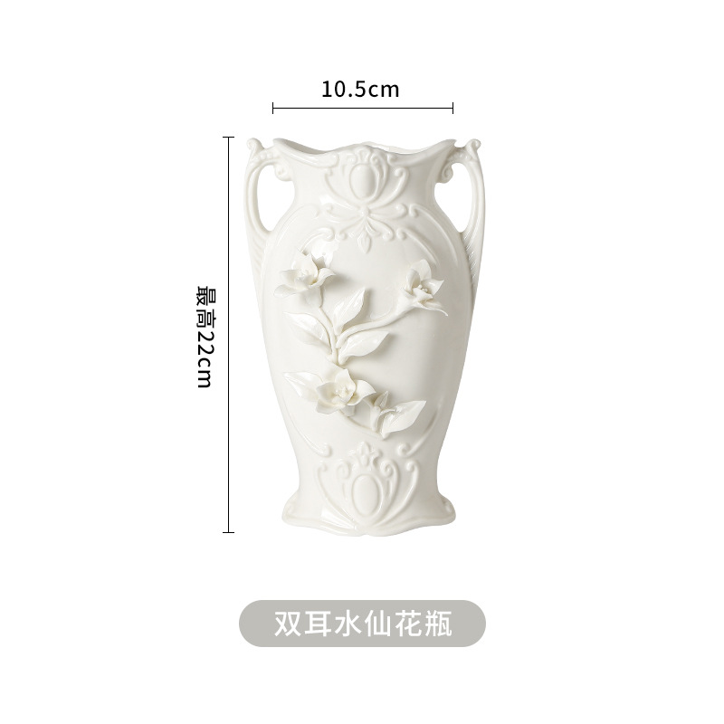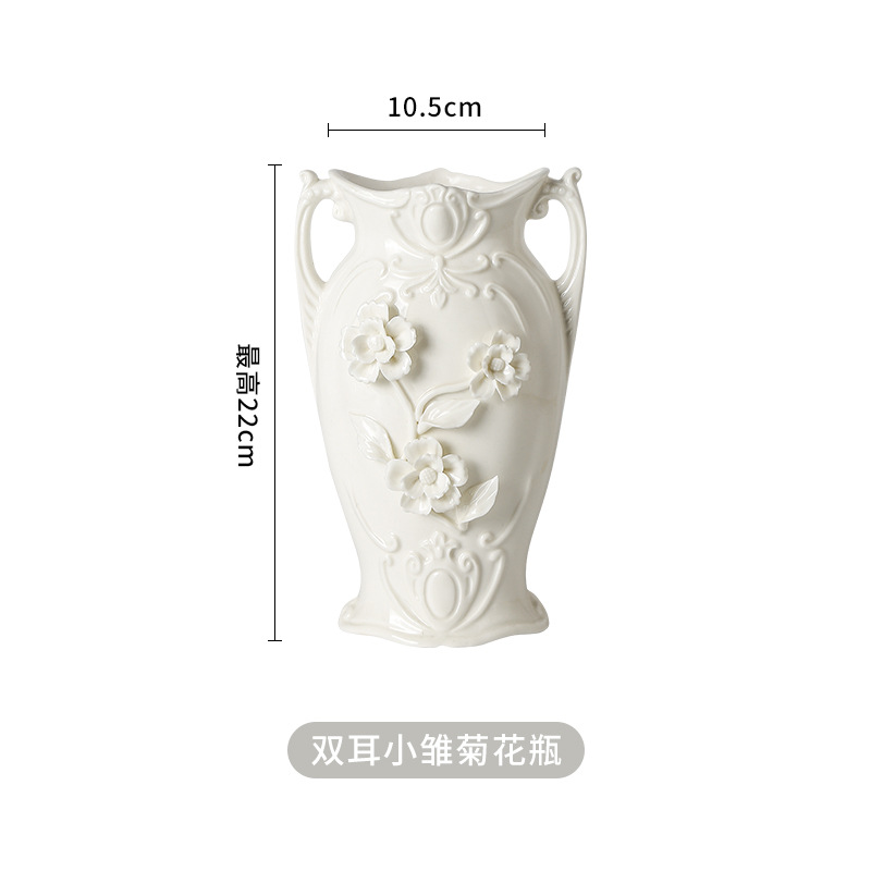 프랑스 스타일 꽃병 손으로 만든 세라믹 꽃 삽입 침대 옆 탁자 장식품 수경 꽃 도구 릴리프 반죽 꽃 삽입 가정용 말린 꽃병
