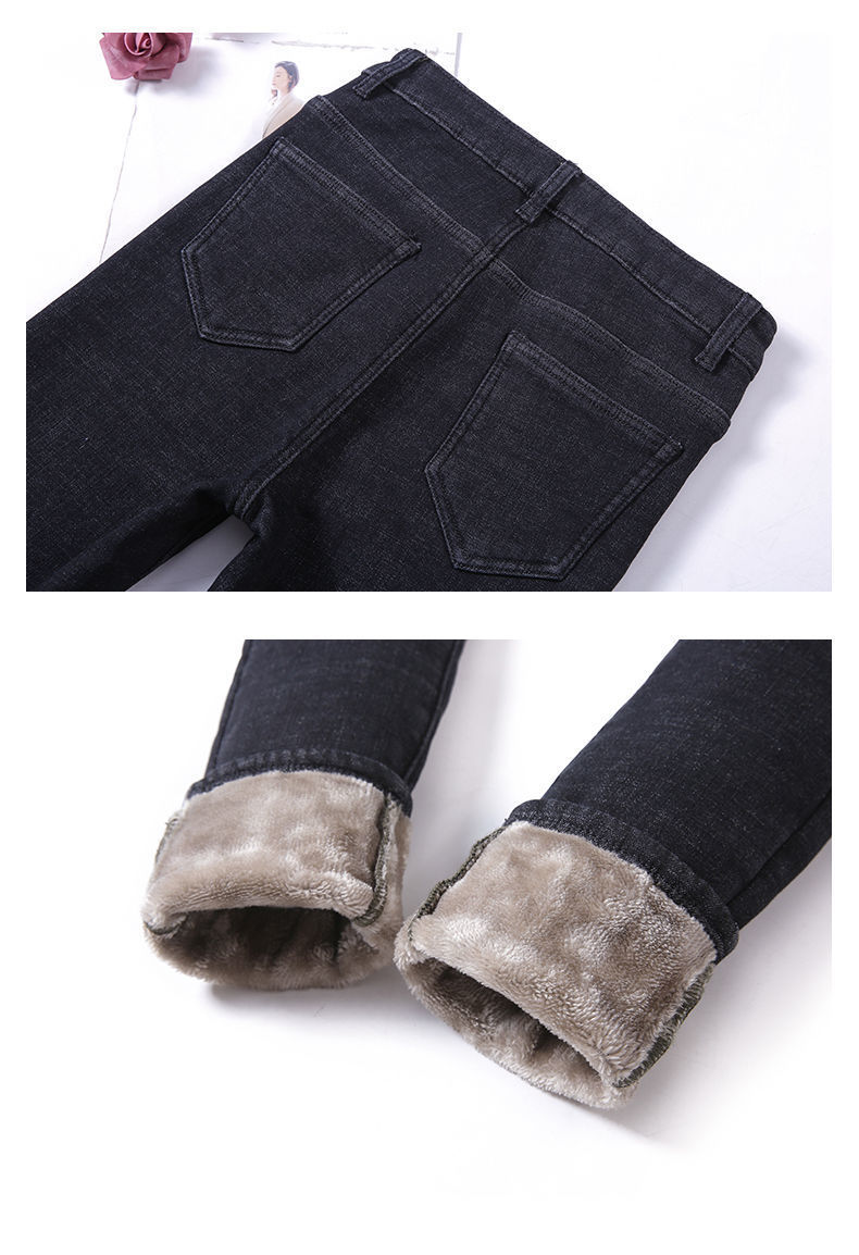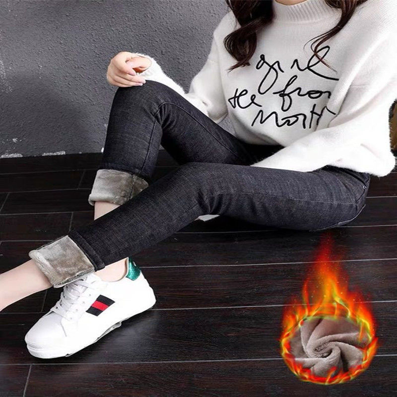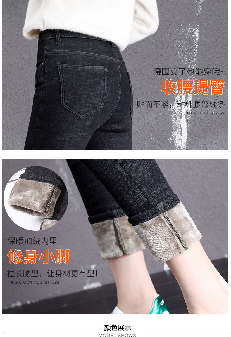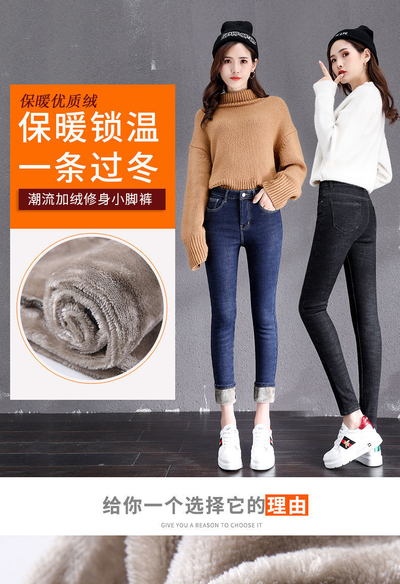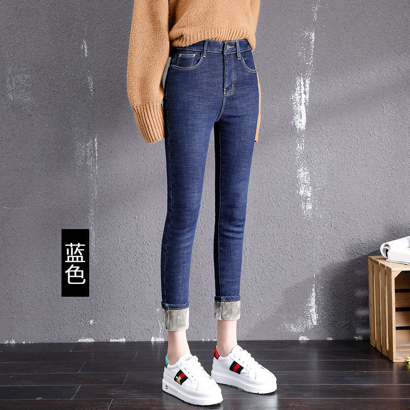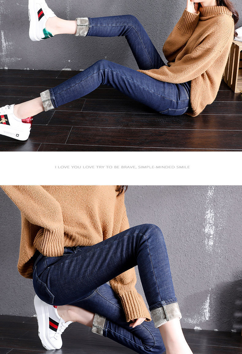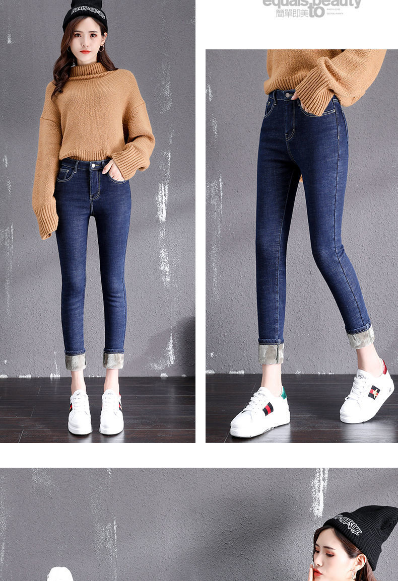 기모 고탄력 겨울 두꺼운 청바지 여성용 스키니 팬츠 하이 웨이스트 한국 스타일 슬림핏 슬리밍 따뜻한 바지 자르기스토어 가기