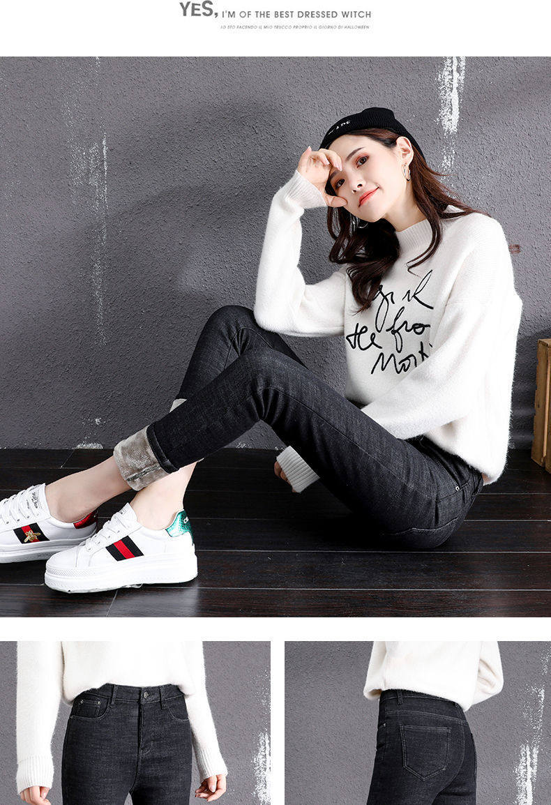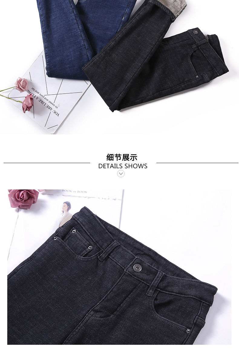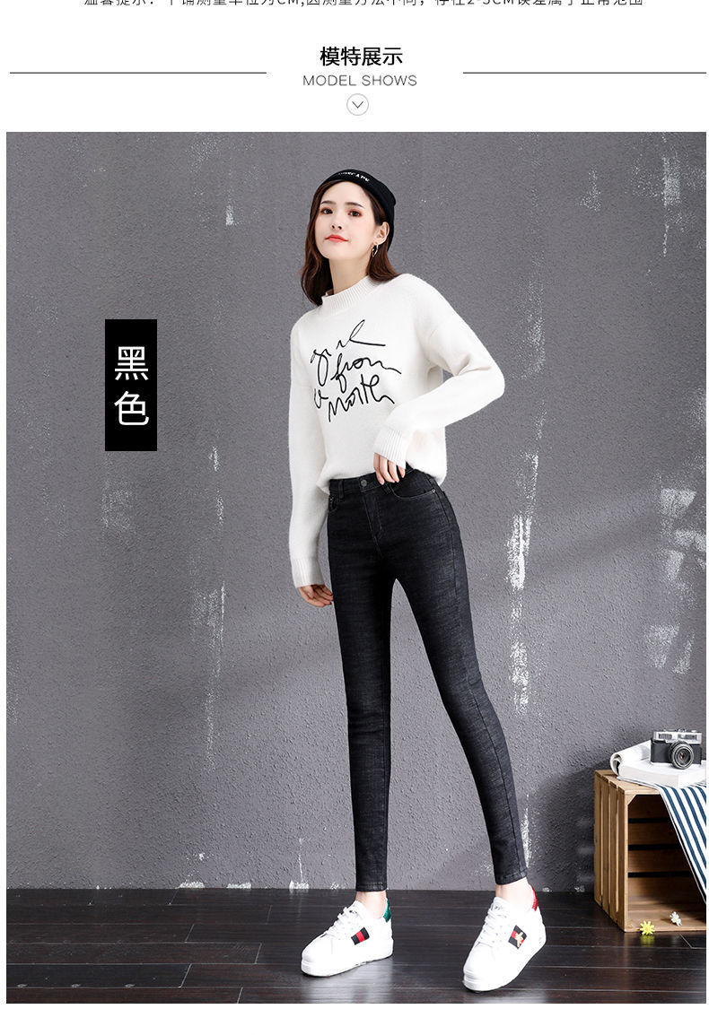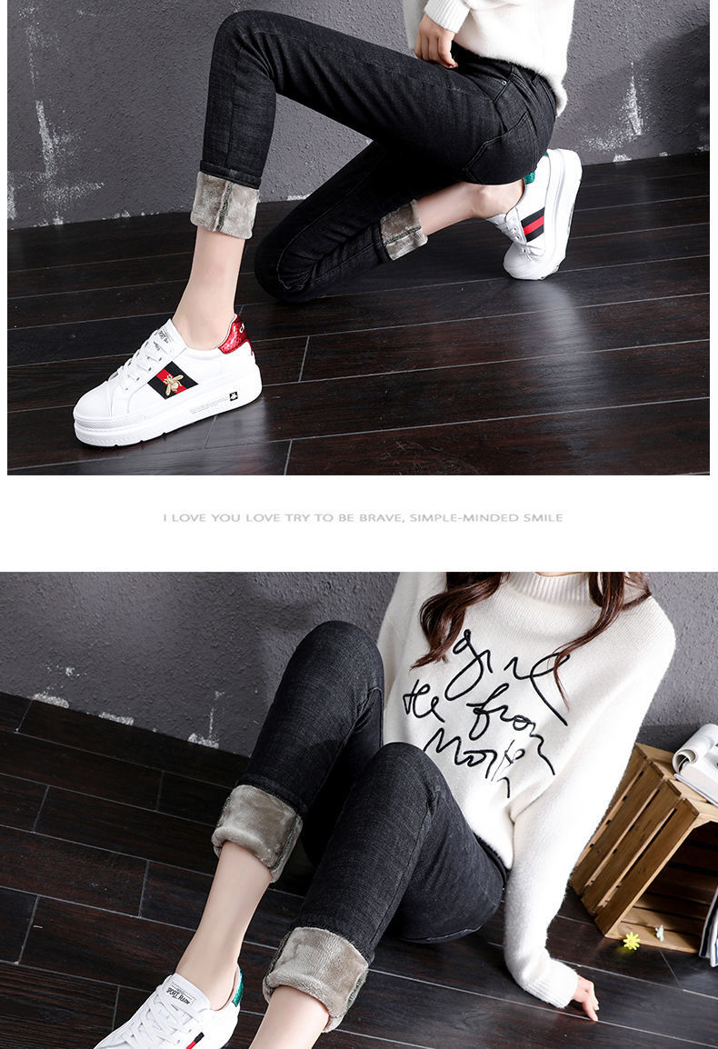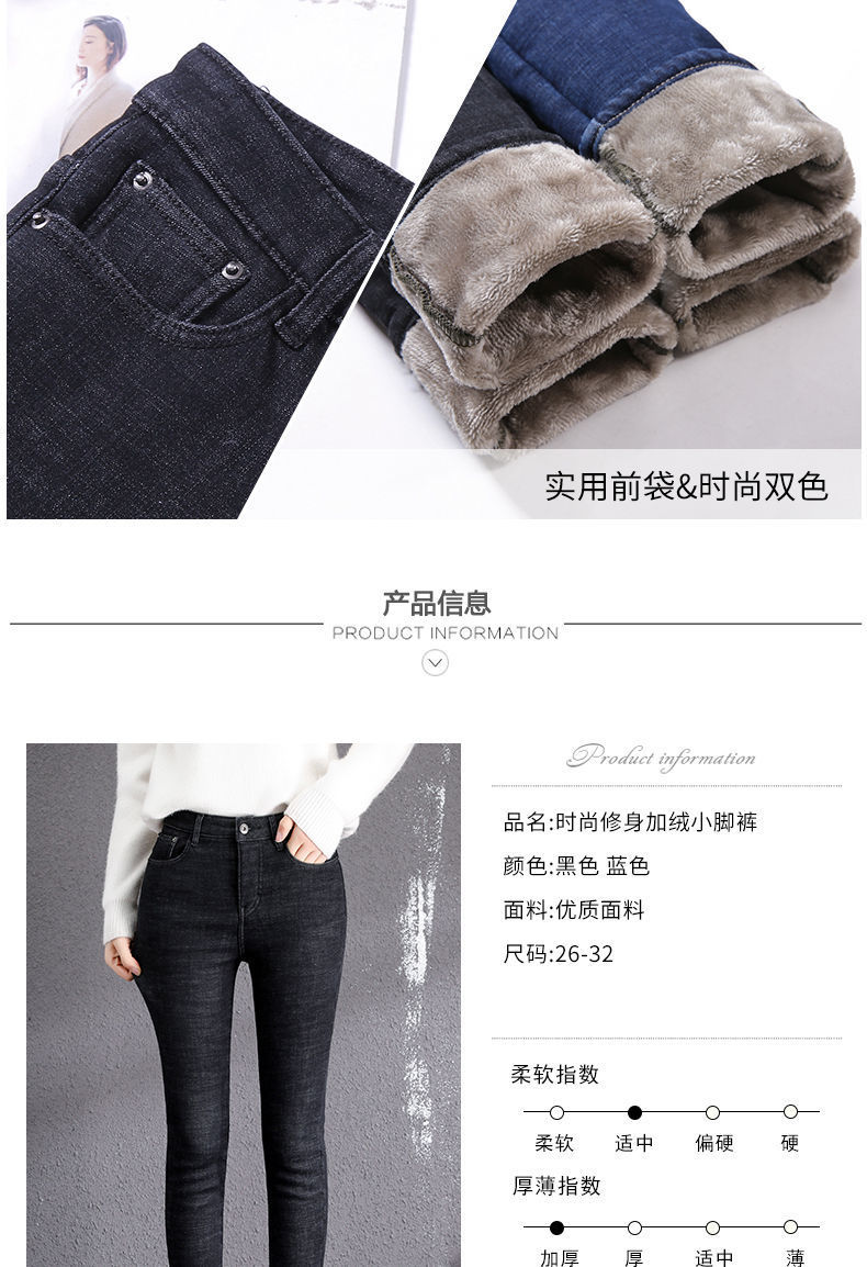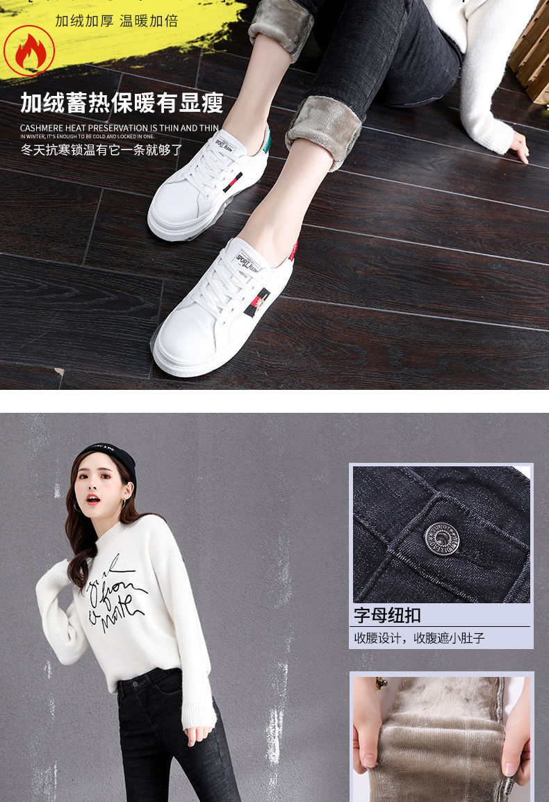 기모 고탄력 겨울 두꺼운 청바지 여성용 스키니 팬츠 하이 웨이스트 한국 스타일 슬림핏 슬리밍 따뜻한 바지 자르기스토어 가기