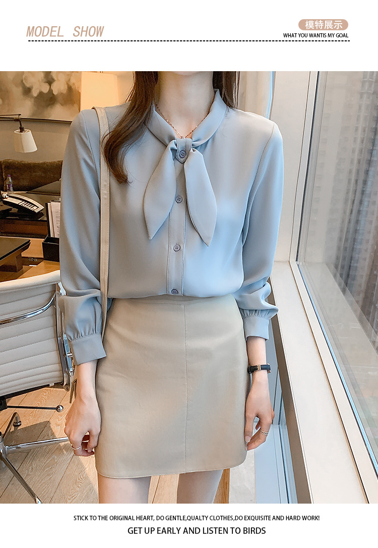 2026 가을 신상 여성용 쉬폰 셔츠, 긴팔, 우아한 디자인, 독특한 토끼귀 넥타이, 프로페셔널 블루 탑스토어 가기
