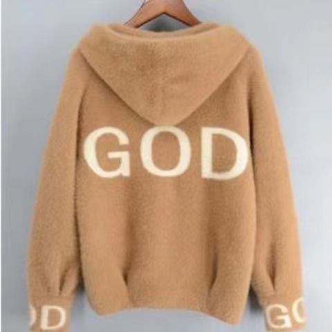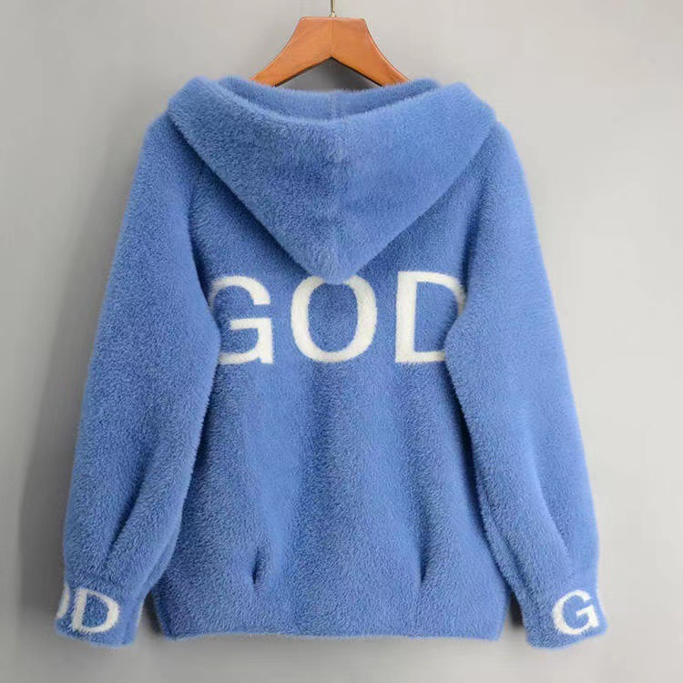 두꺼운 모조 밍크 캐시미어 재킷 2023 새로운 가을과 겨울 여성 후드 스웨터 카디건 느슨한 겉옷 두꺼운 코트스토어 가기