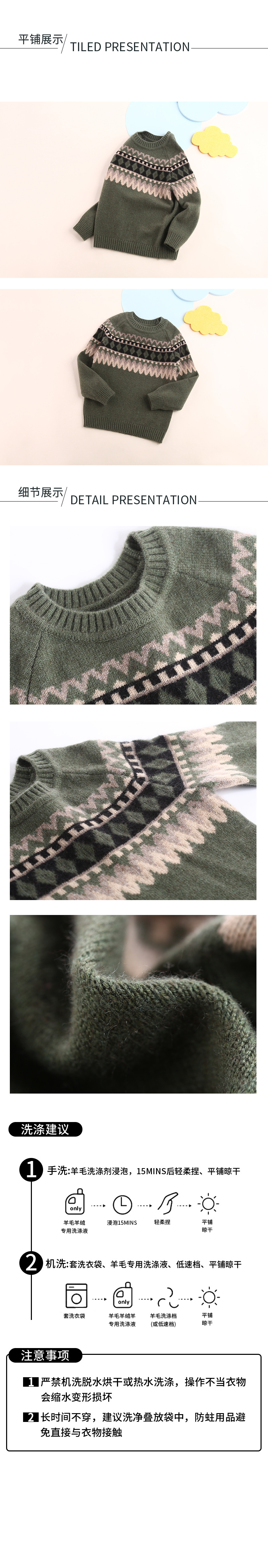 양과 양의 수 새로운 어린이 캐시미어 스웨터 아기 녹색 자카드 라운드 넥 사랑 두꺼운 스웨터 스웨터 스웨터스토어 가기